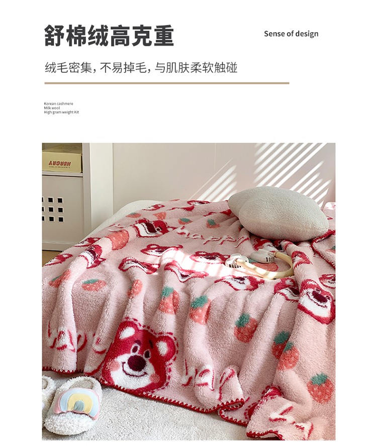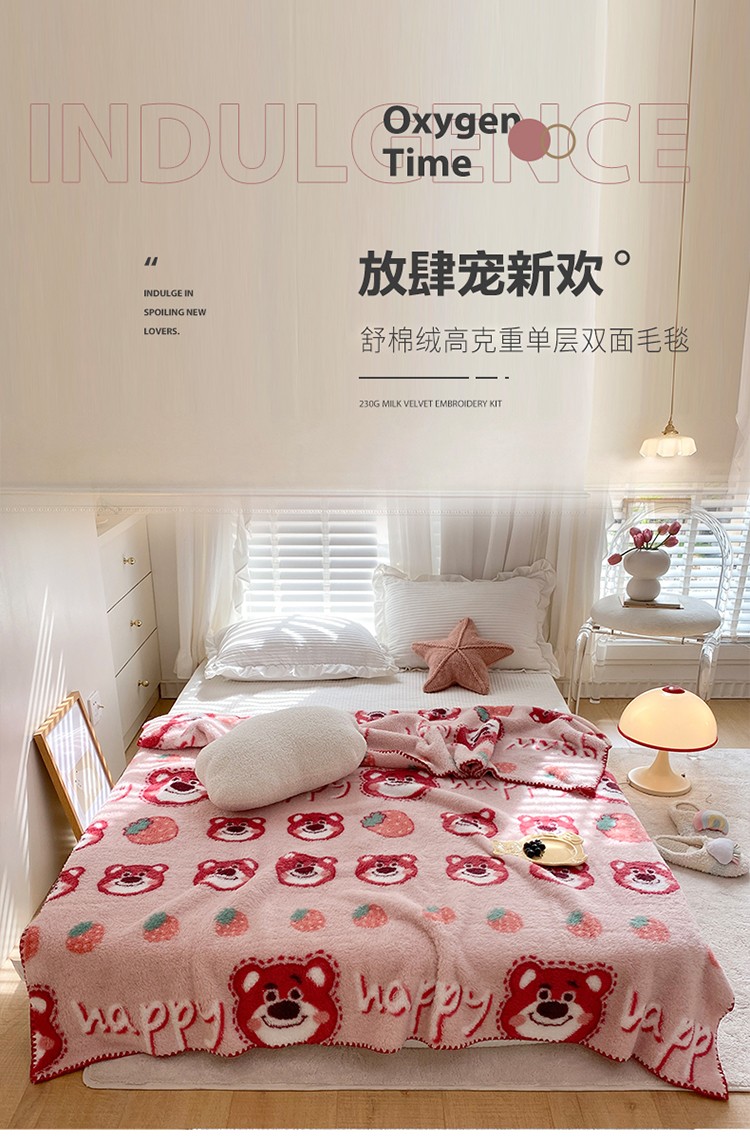 (总)眠屿 2022新款舒绒棉高克重单层双面毛毯,胡迪伙伴,开心草莓熊,玫瑰朵朵,蜜桃多多,奶油熊,苏浅