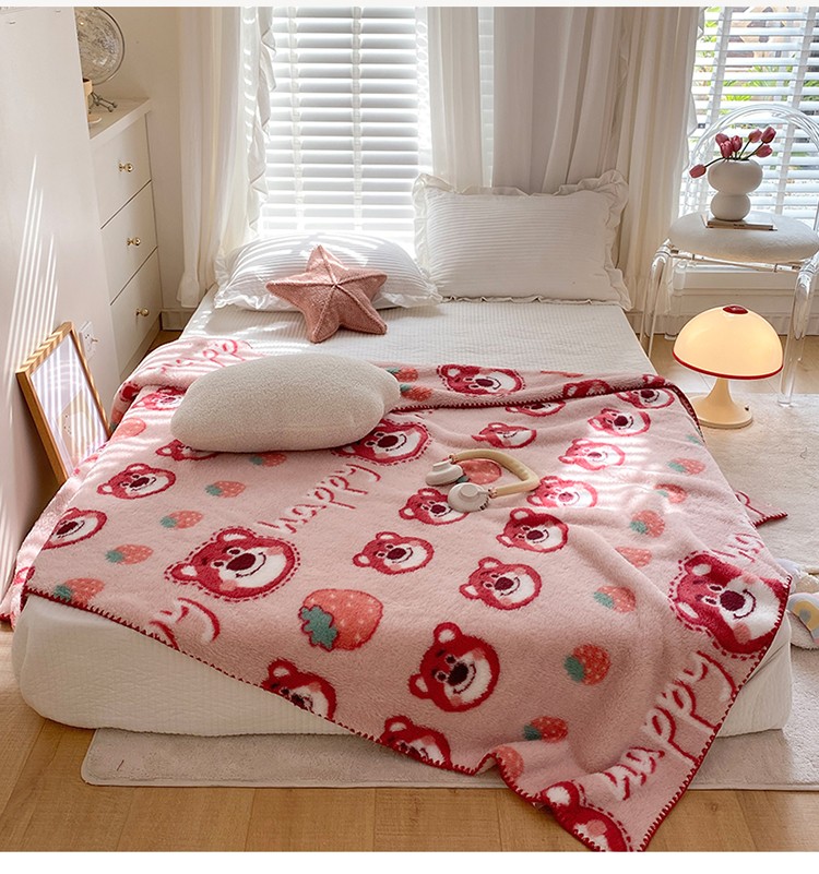 眠屿 2022新款舒绒棉高克重单层双面毛毯 开心草莓熊