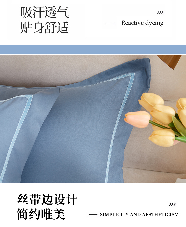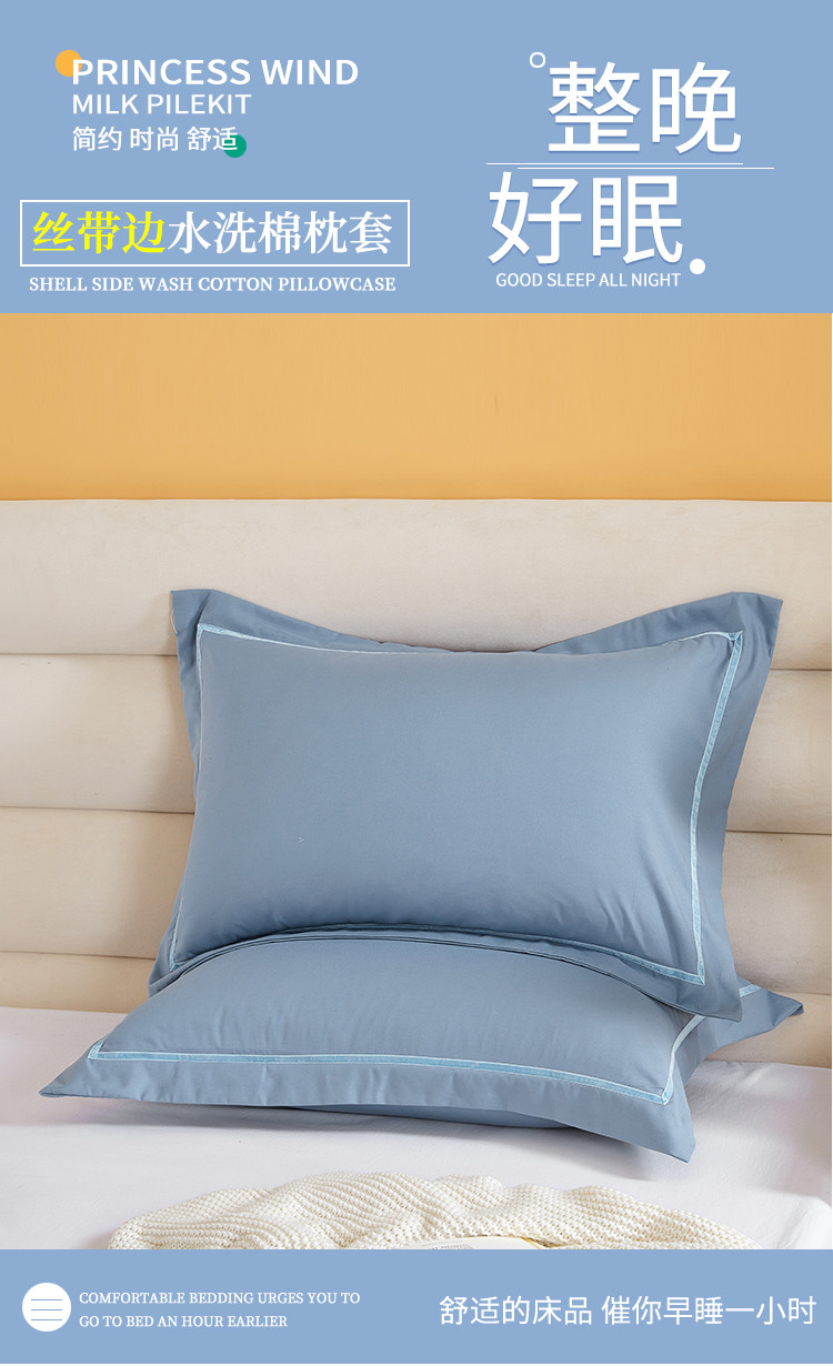 (总)丰淘家纺 2022新款水洗棉丝带边纯色枕套