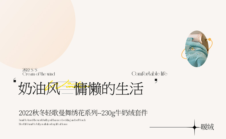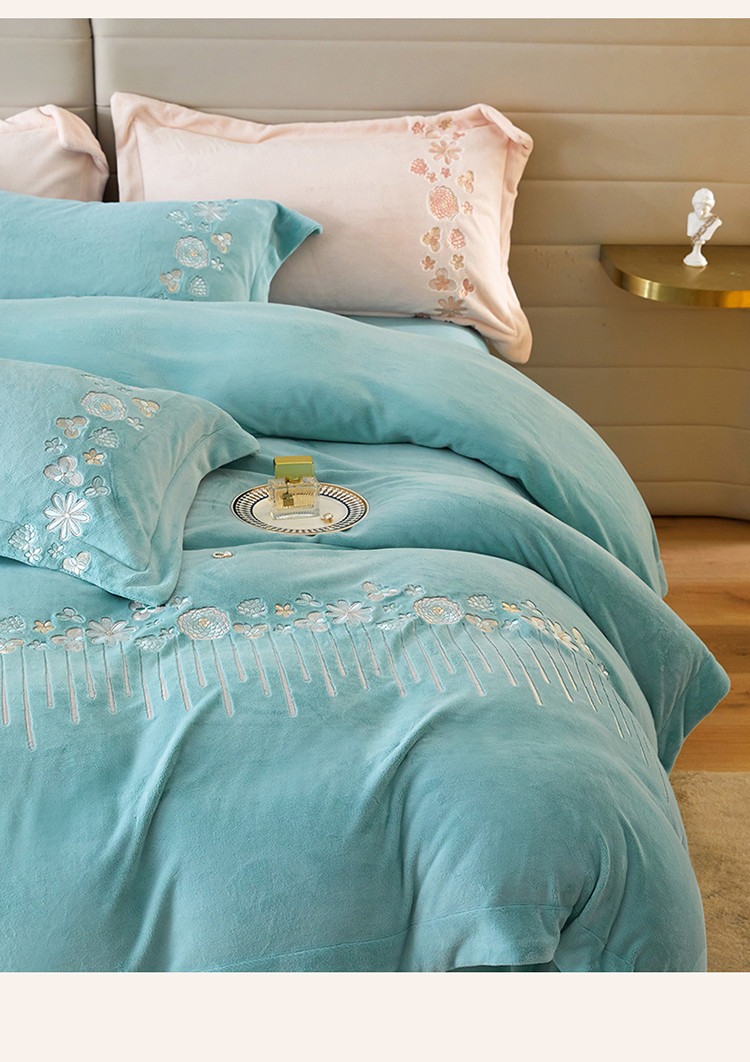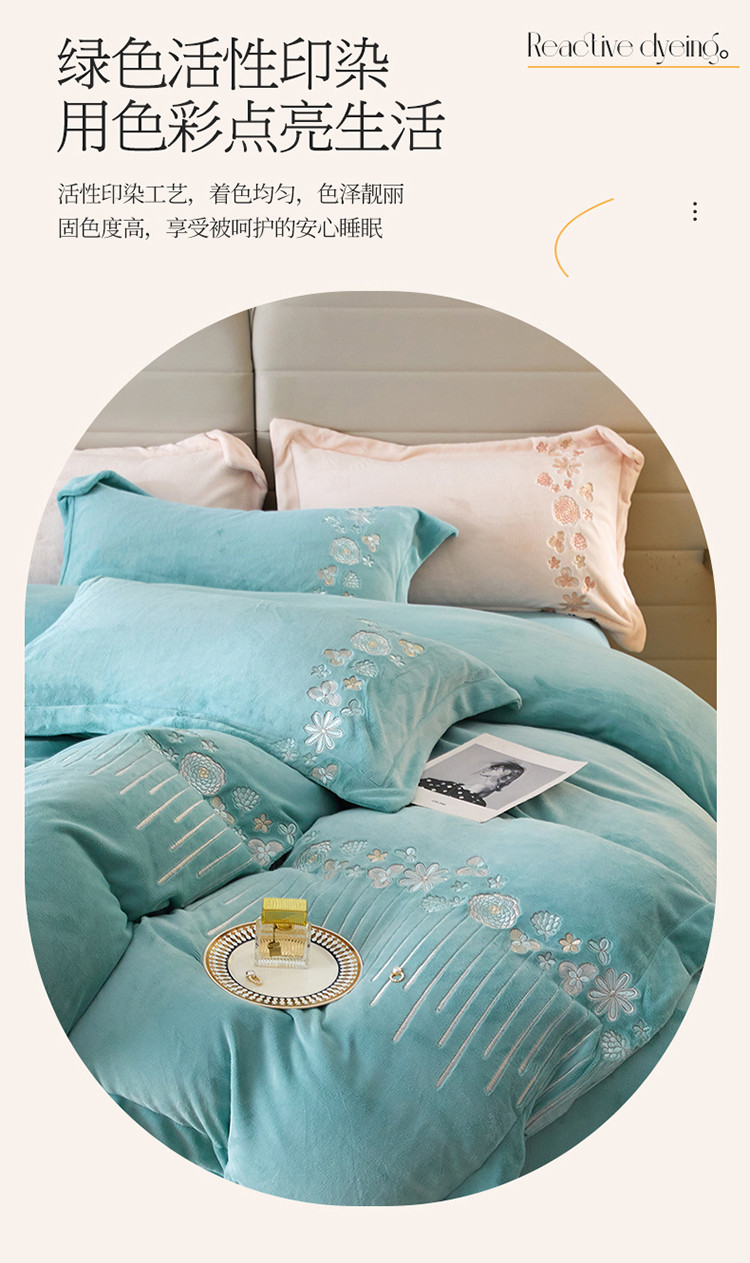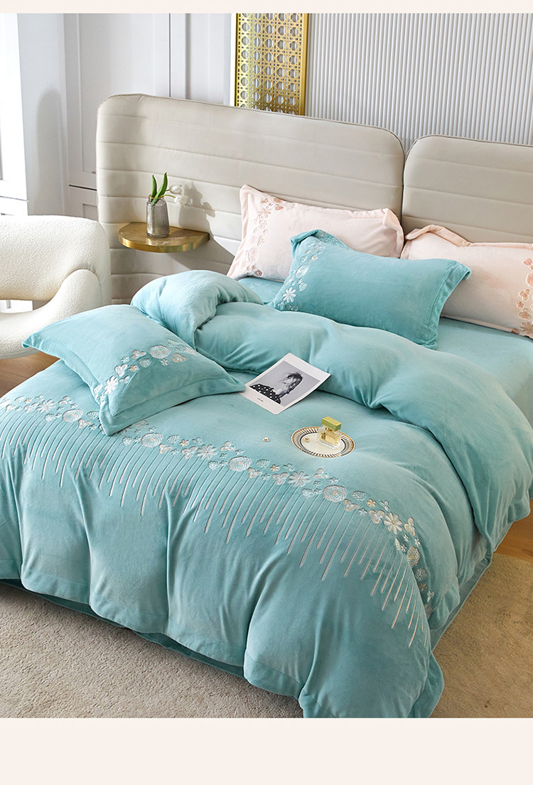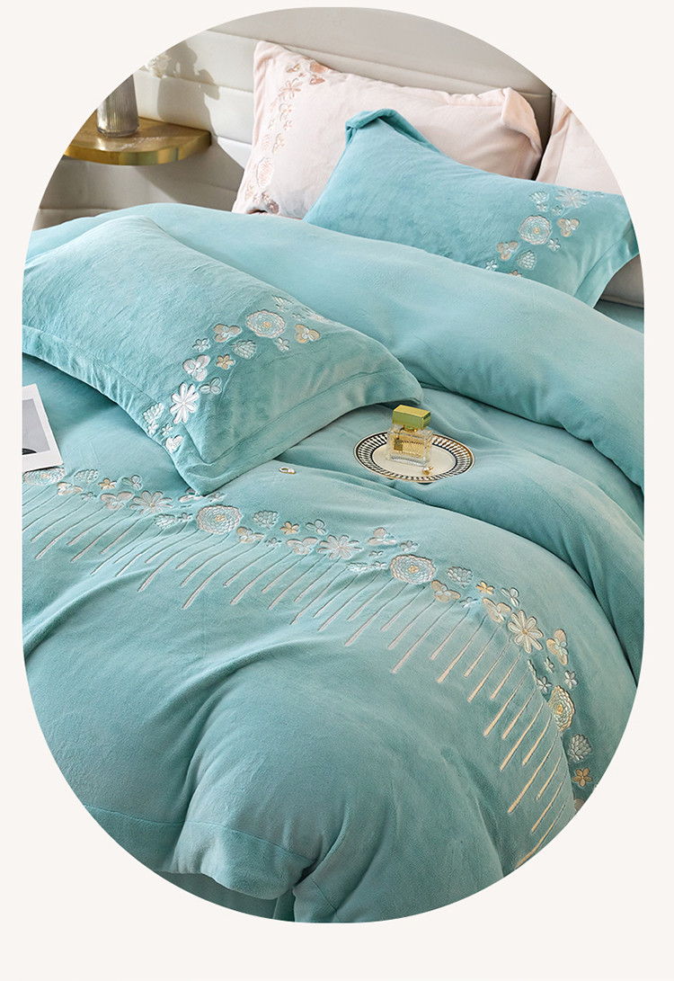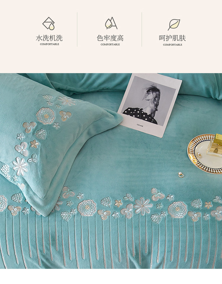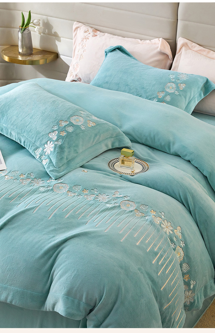 名品优仓 2022新款轻歌曼舞系列230g牛奶绒绣花四件套 轻歌曼舞-天空蓝