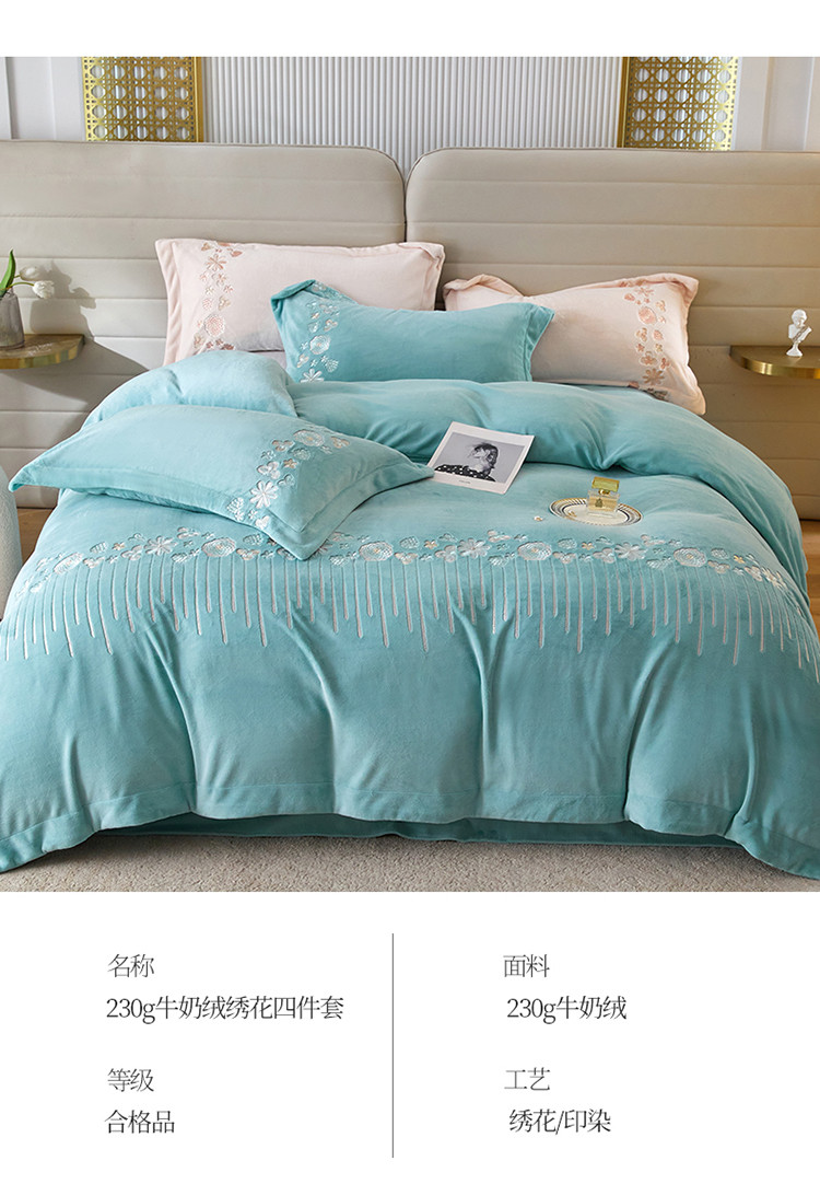(总)名品优仓 2025新款220克牛奶绒绣花四件套-珊瑚,珊瑚-宝石蓝,珊瑚-粉色,珊瑚-姜黄,珊瑚-米杏,珊瑚-沫粉,珊瑚-杏粉