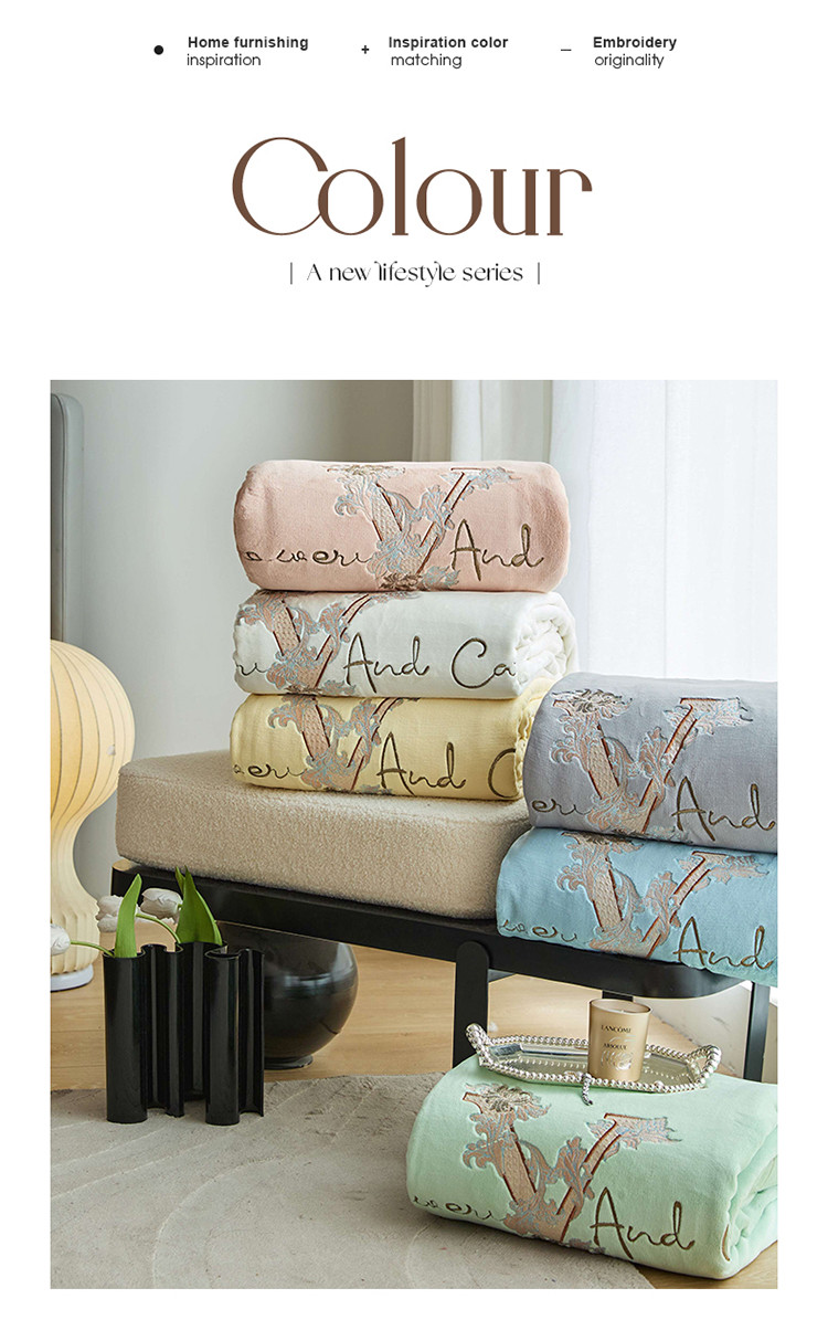 名品优仓 2023新款水洗棉毛巾绣撞边款式四件套-玫瑰熊 风信子-玲月白,风信子-玲月白