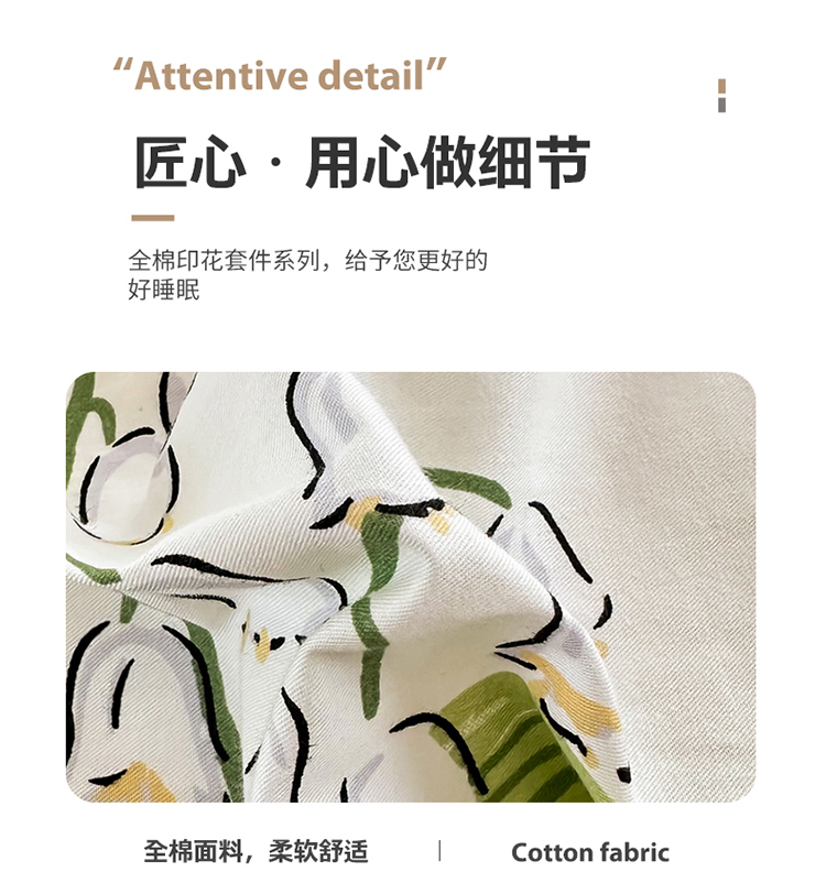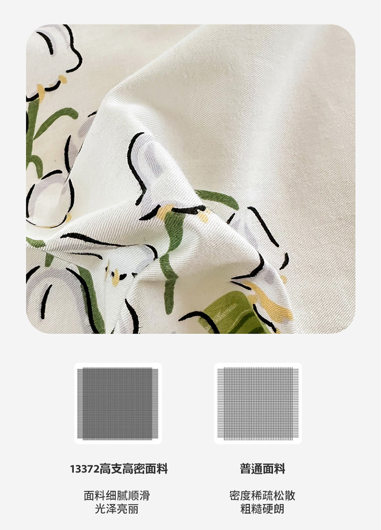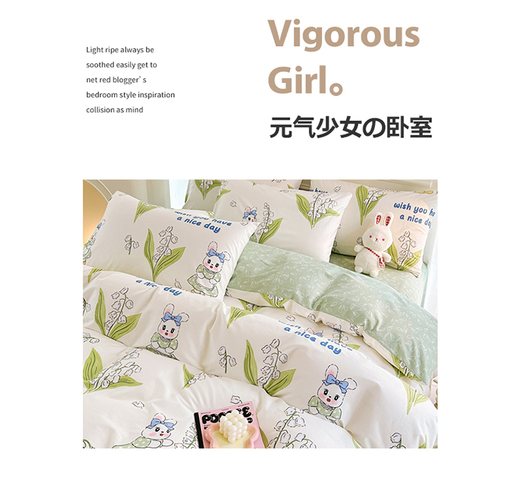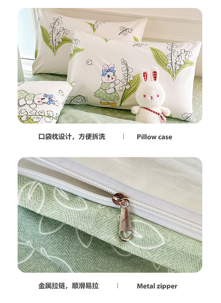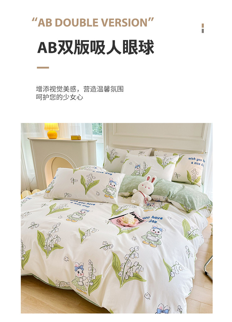 星巴k家纺 2023全棉13372花卉印花简约四件套铃兰兔