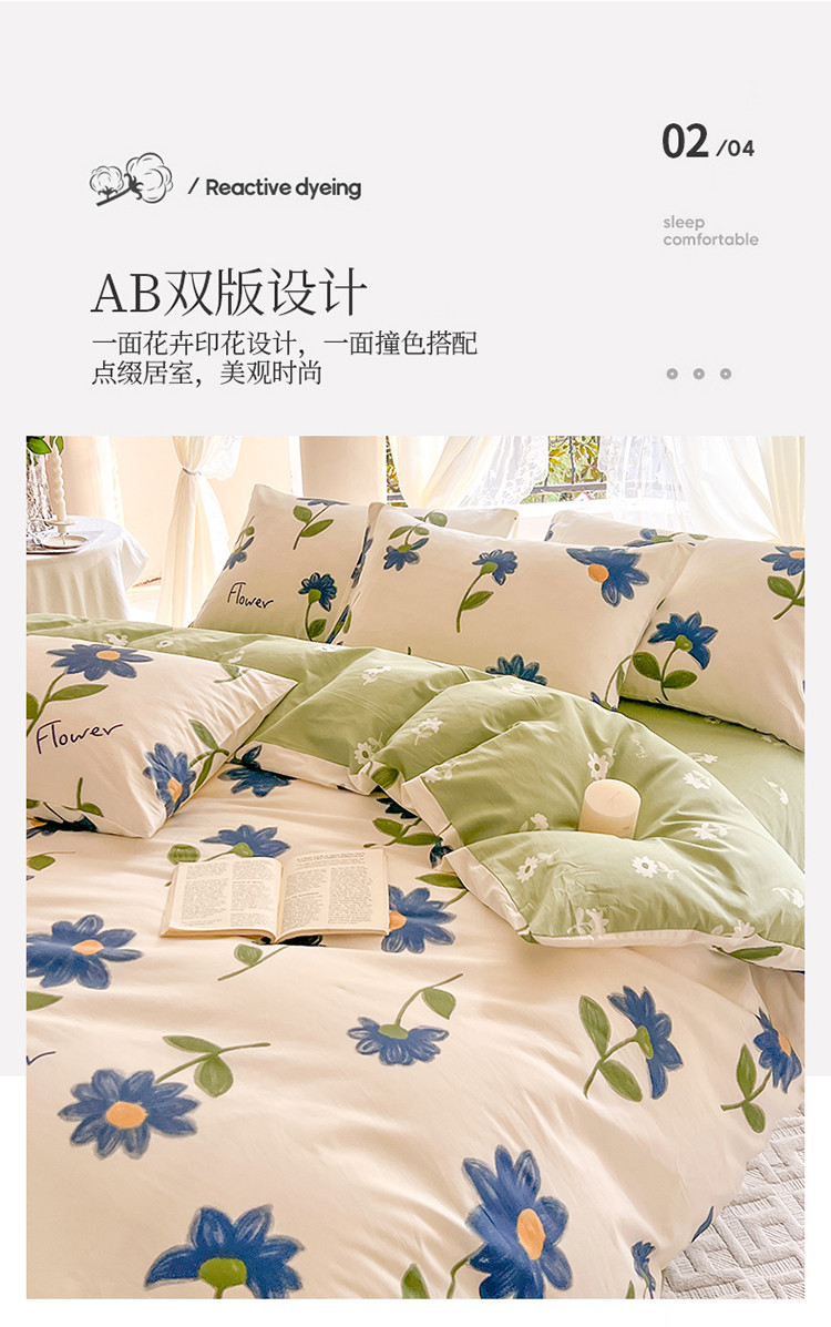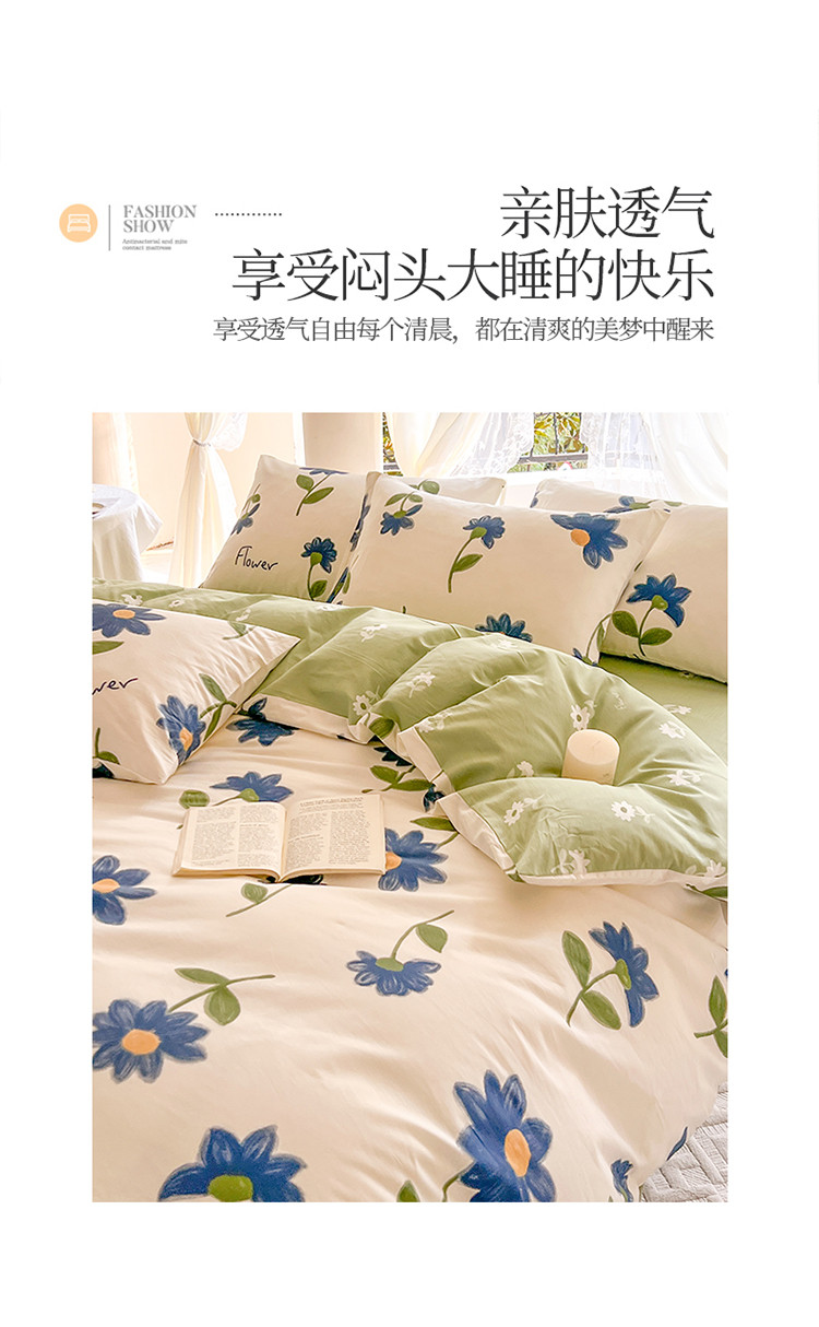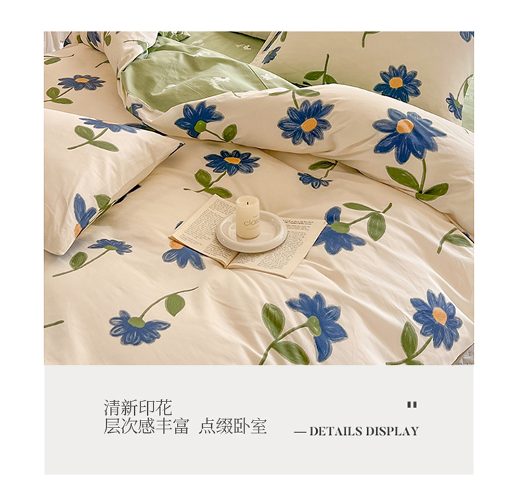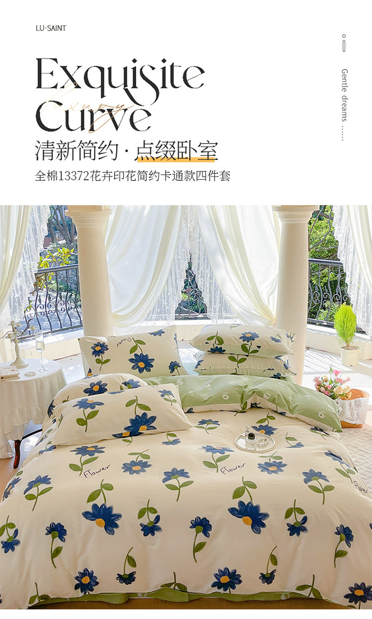 星巴k家纺2023新款全棉13372花卉印花简约卡通款多规格四件套墨染