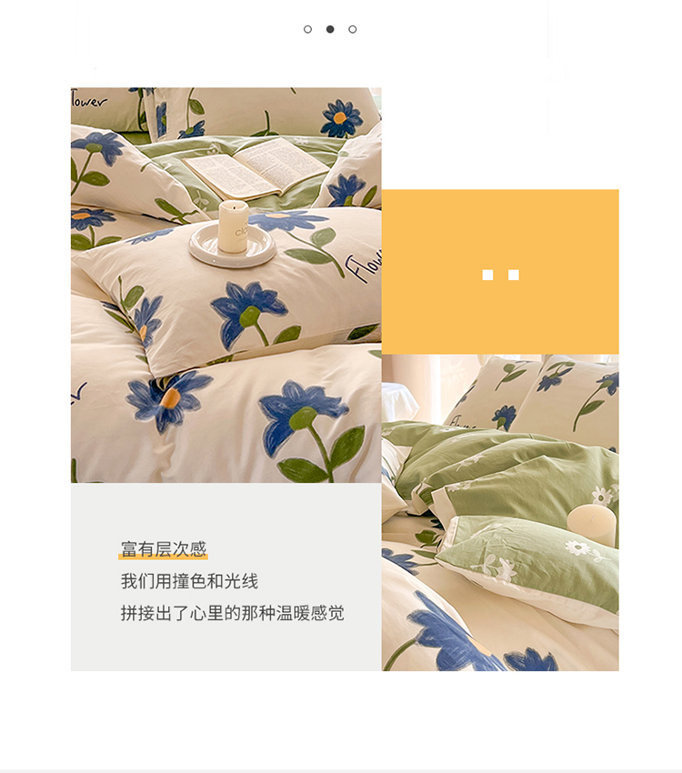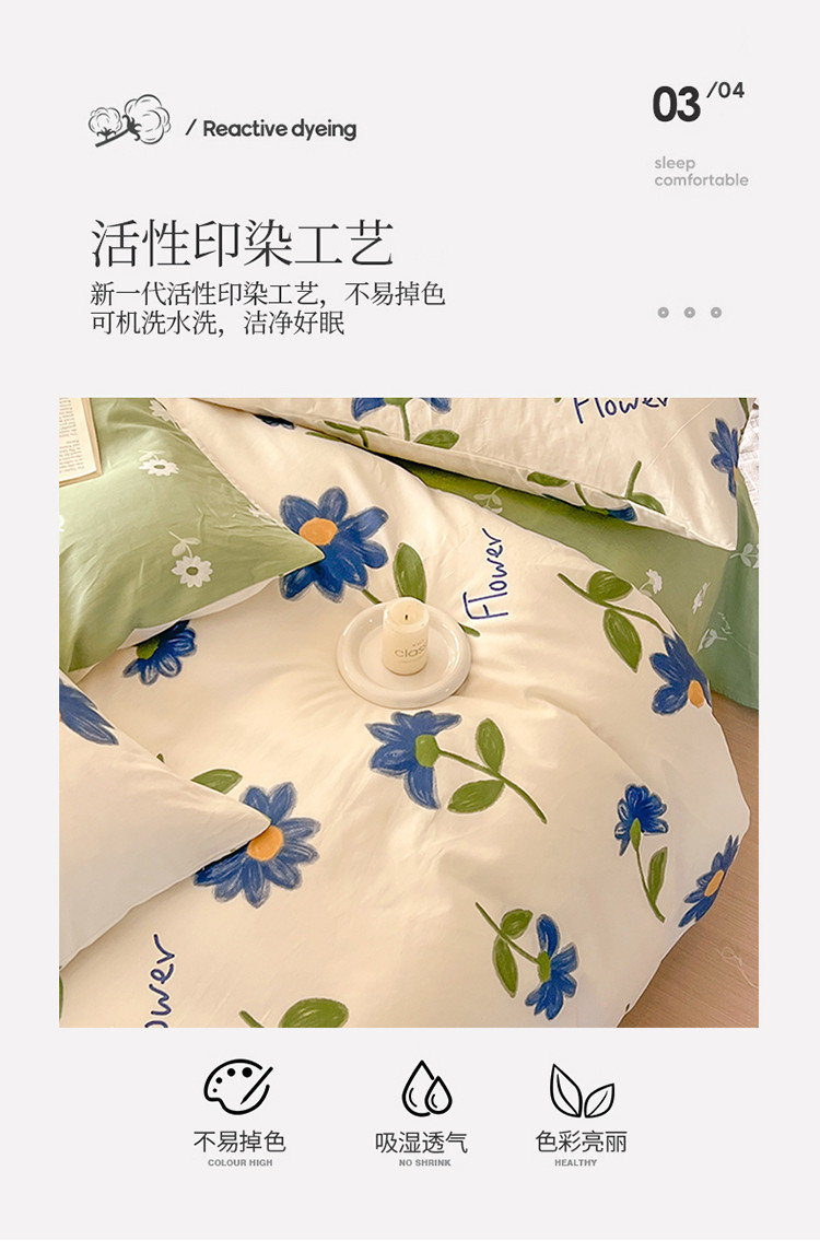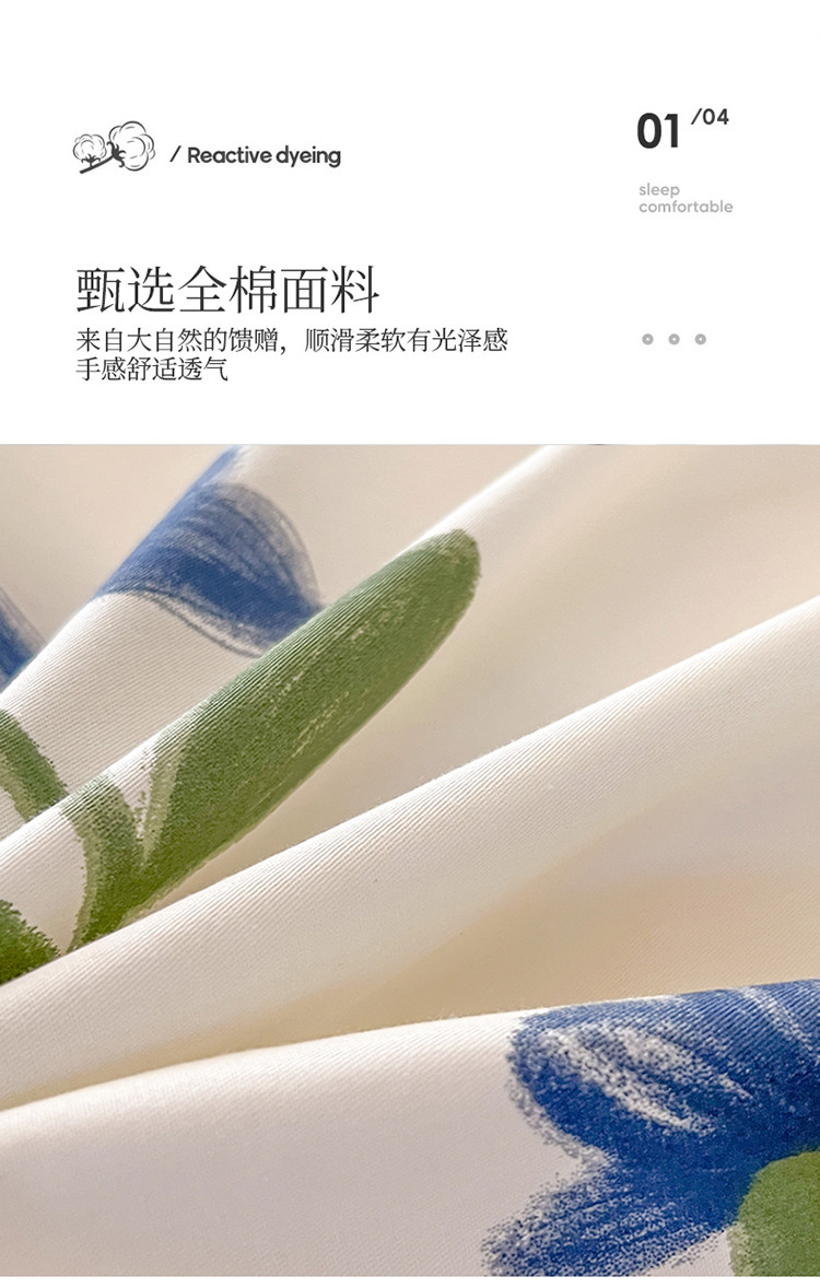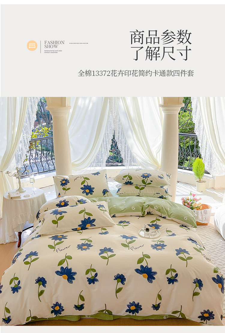 商品名称:星巴k家纺2023新款全棉13372花卉印花简约卡通款多规格四件套墨染