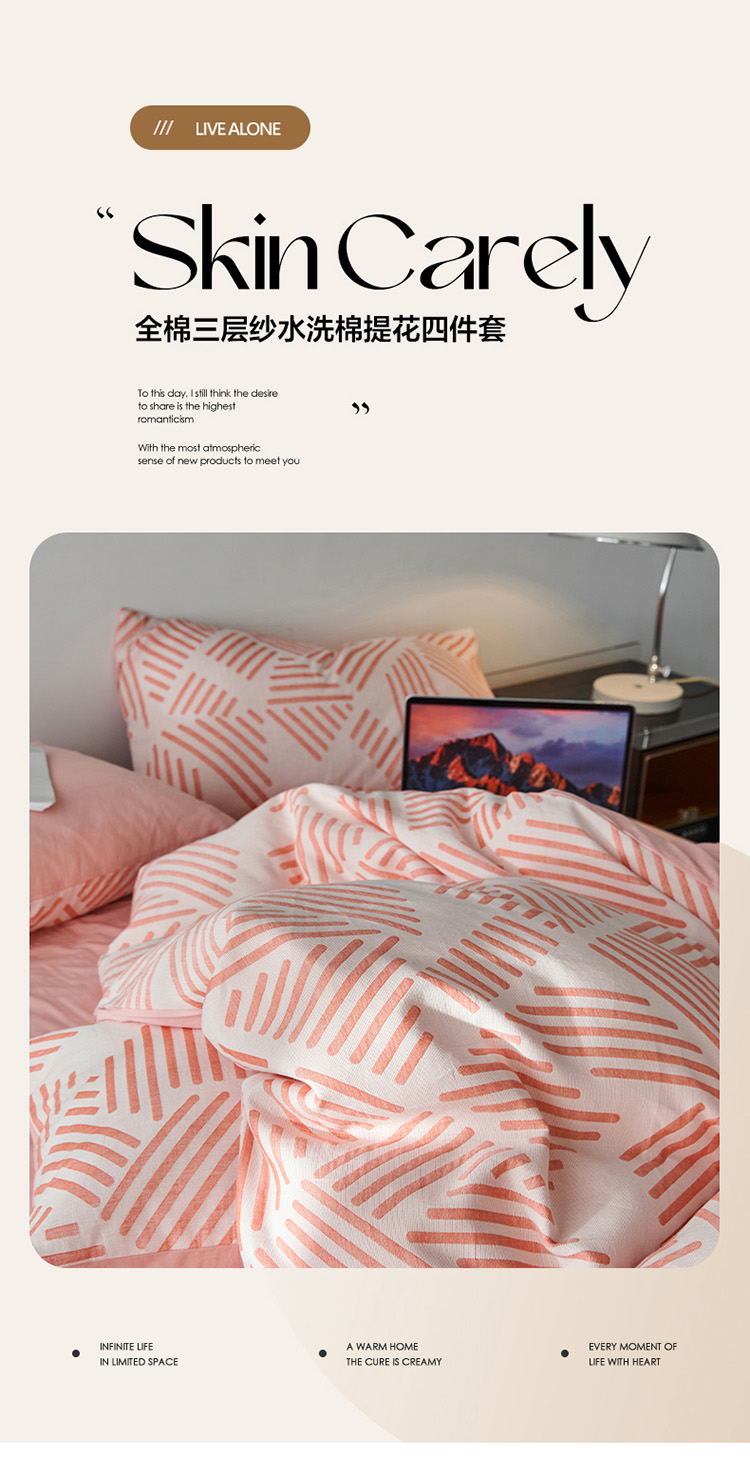 (总) 雅居纺 2023新款全棉三层纱提花四件套