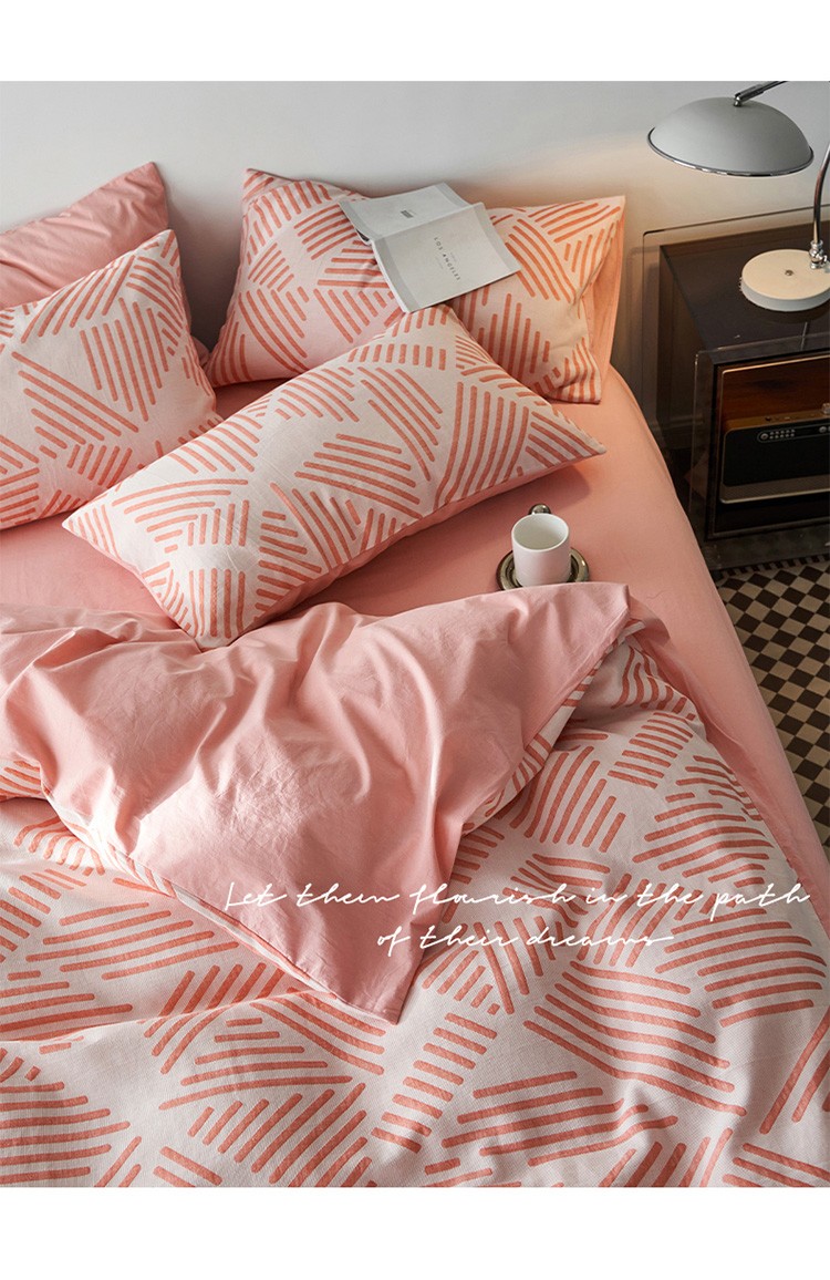 (总)雅居纺家纺 2022新款13070全棉印花四件套,波纹,多彩,简笔画,莓关系,奶油绿豹纹,倾心,数字