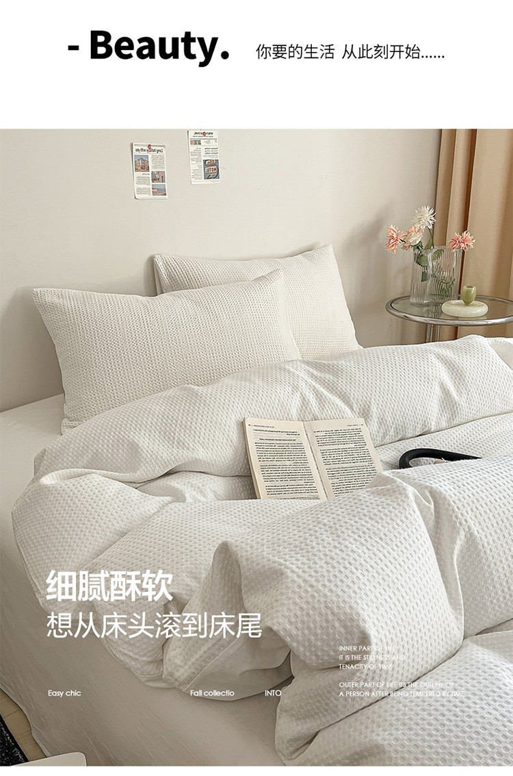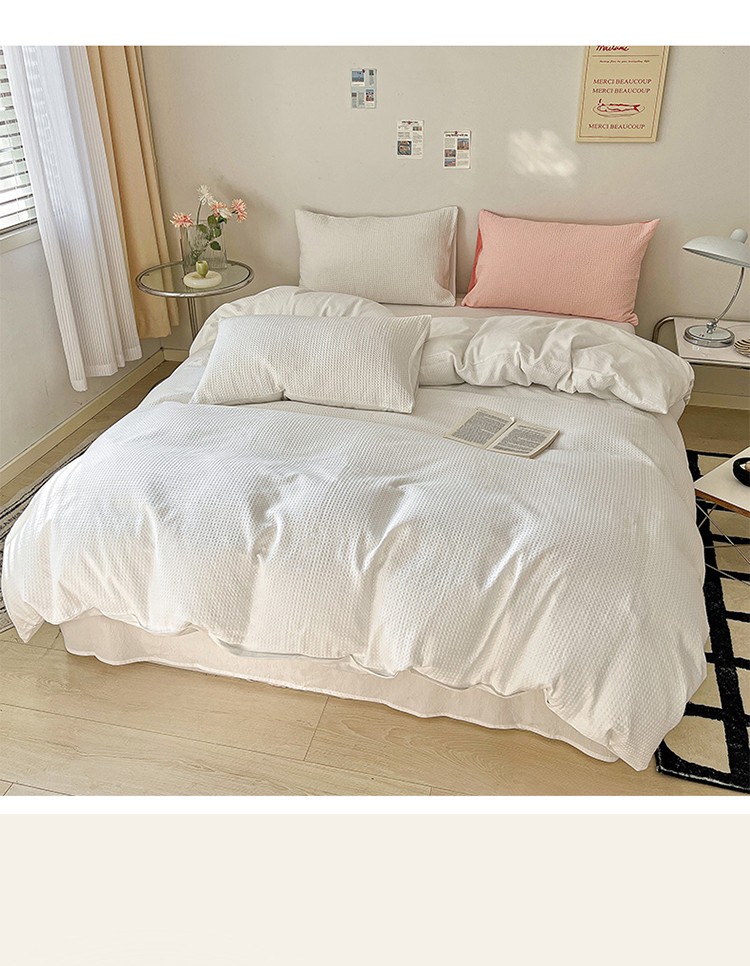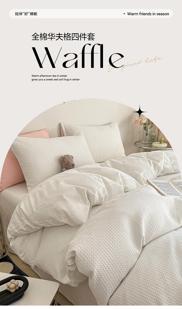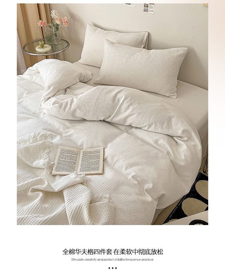雅居纺 2023新款全棉华夫格四件套 华夫格奶油白