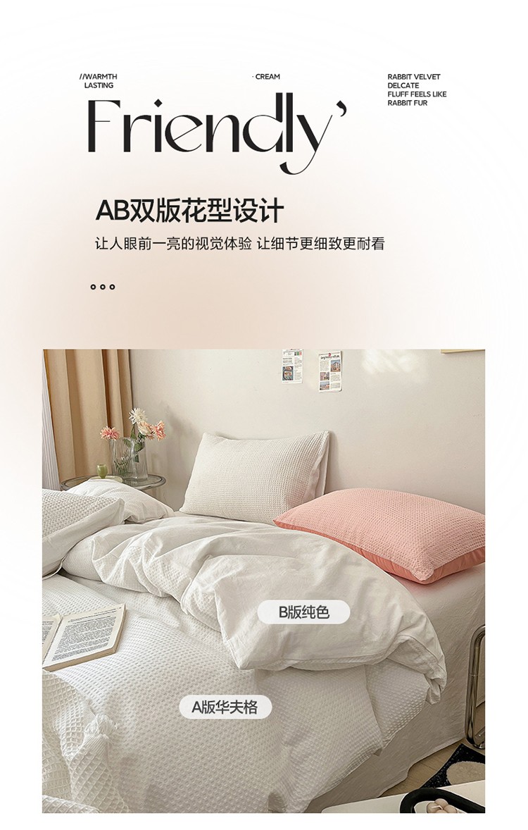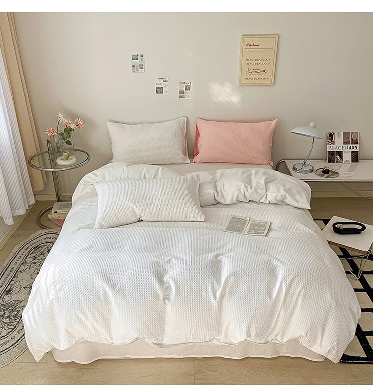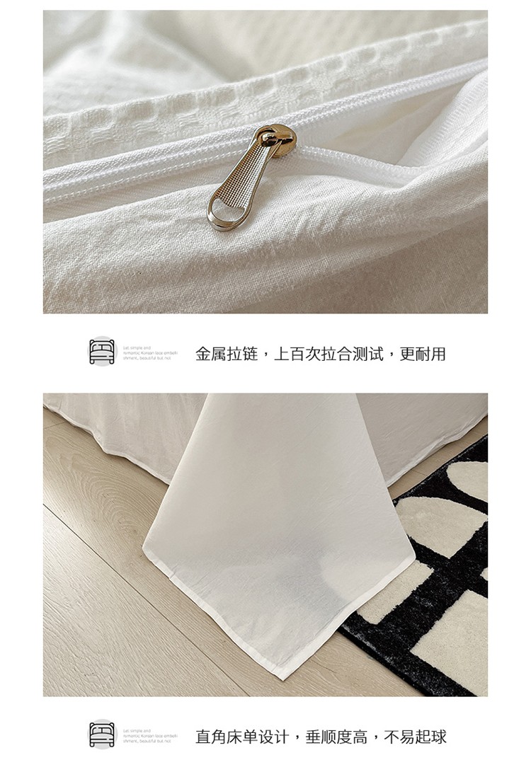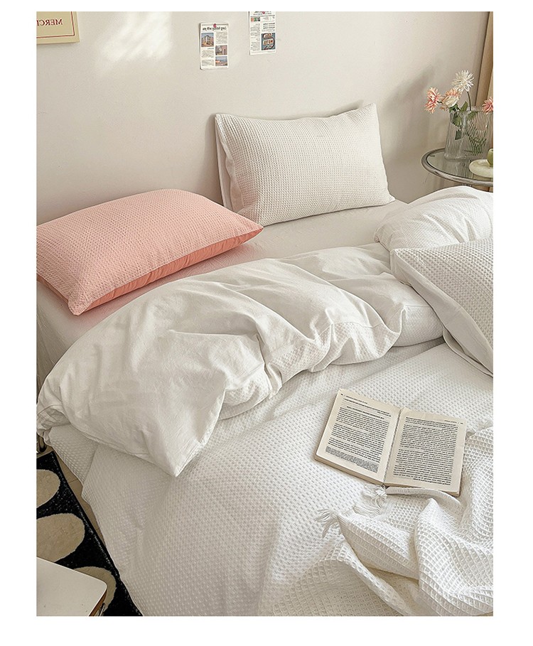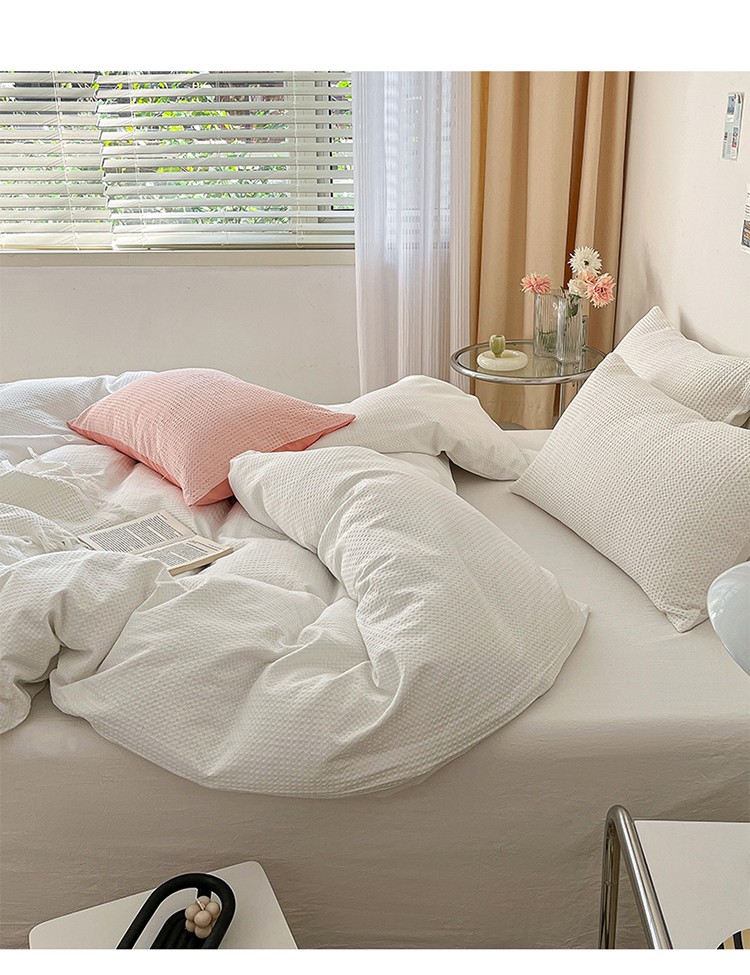 雅居纺 2023新款全棉华夫格四件套 华夫格奶油白