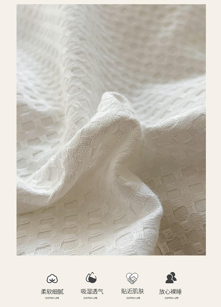 商品名称:雅居纺 2023新款全棉华夫格四件套 华夫格奶油白
