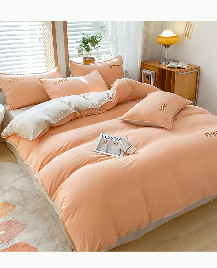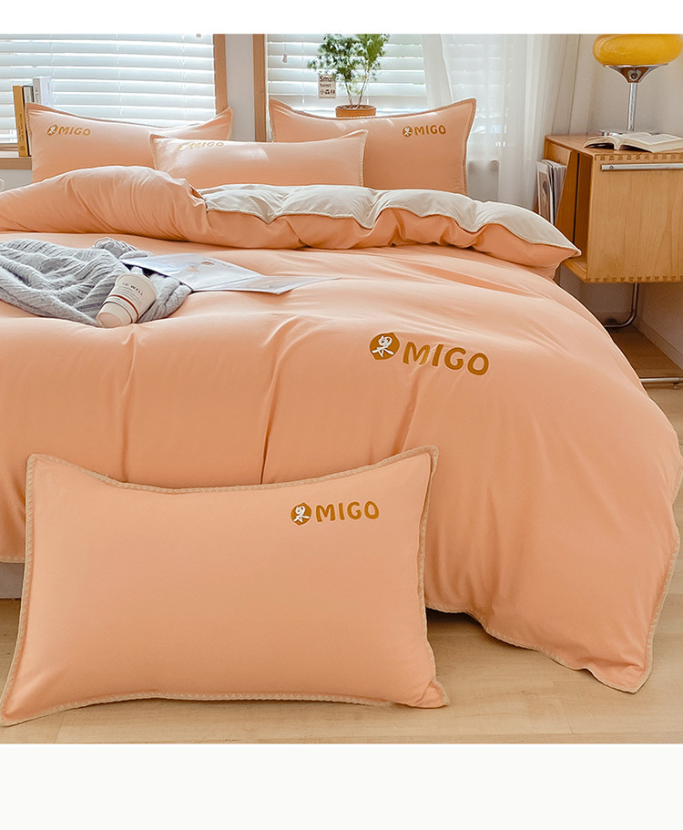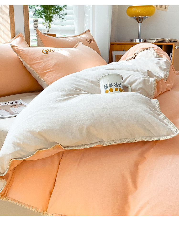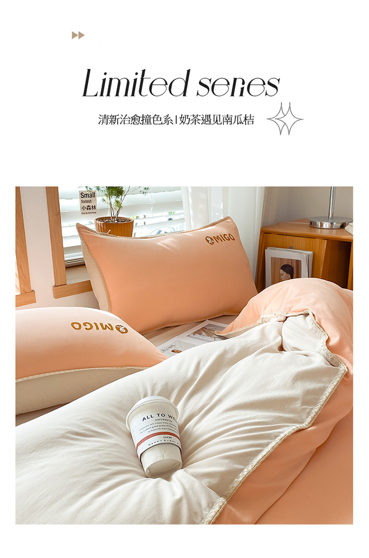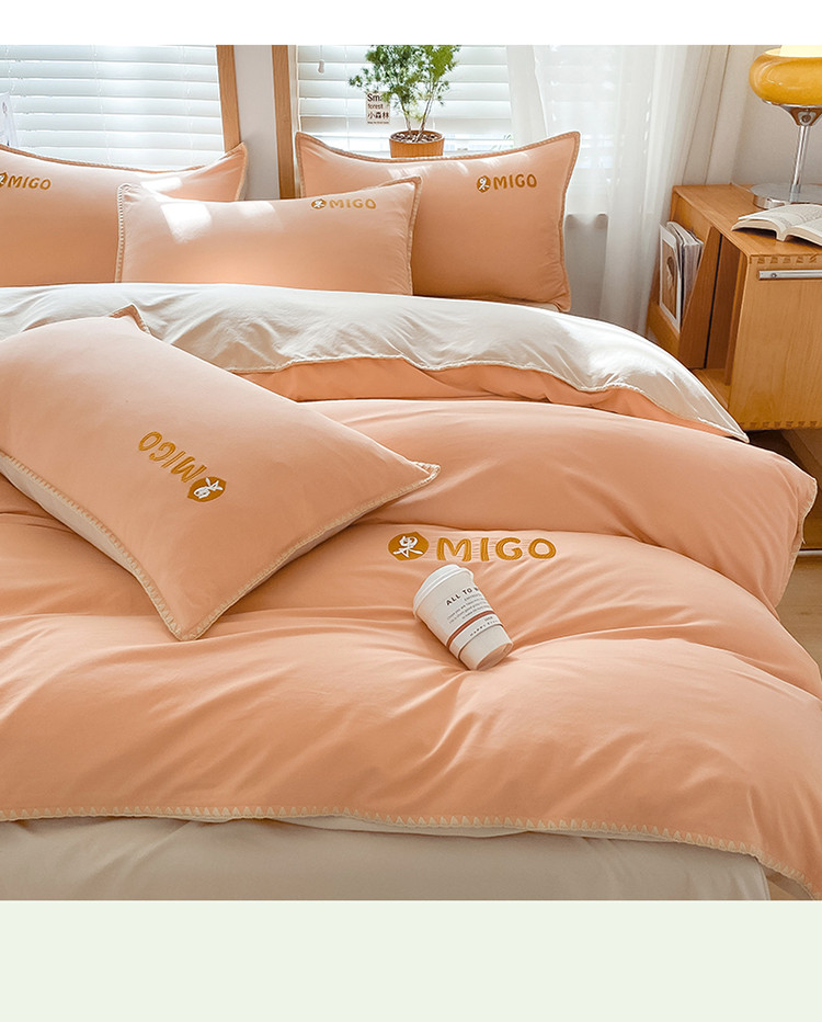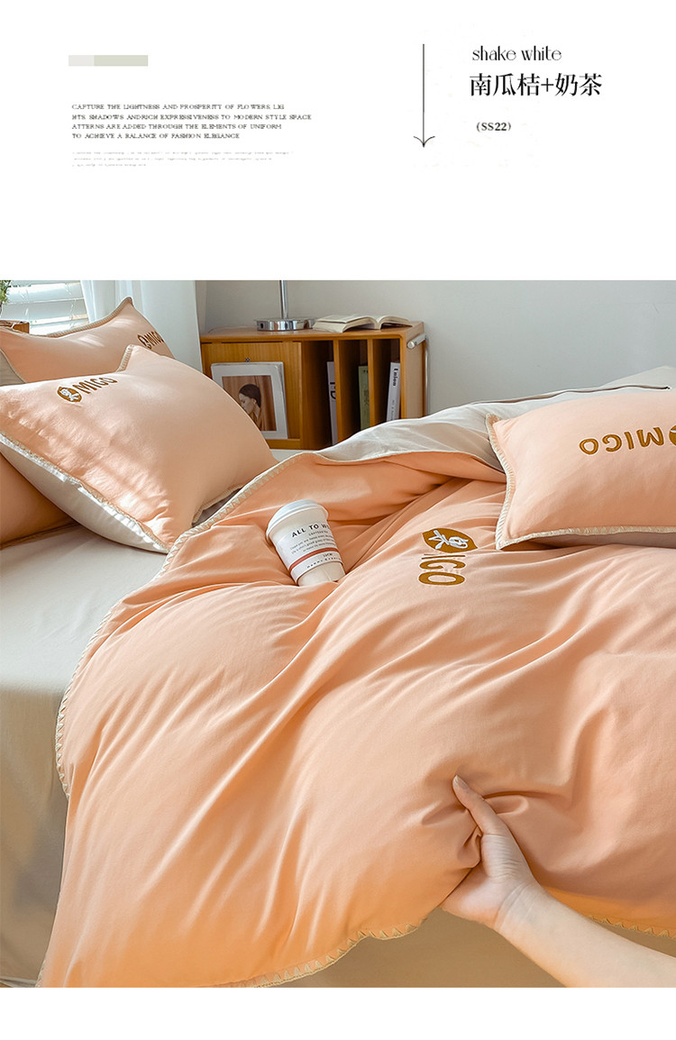 商品名称:蓝米卡夫 2024新-A类云朵棉蜜果刺绣系列四件套 蜜果-南瓜桔+奶茶