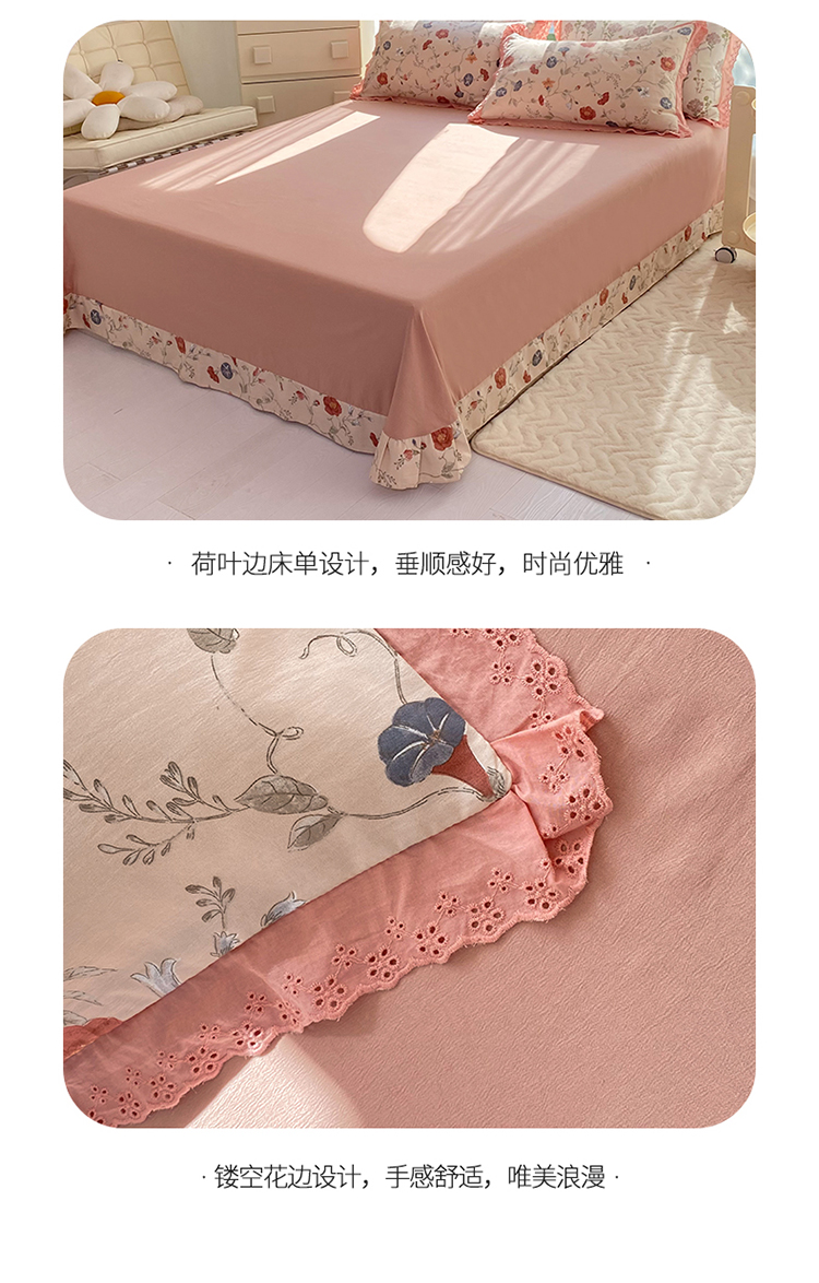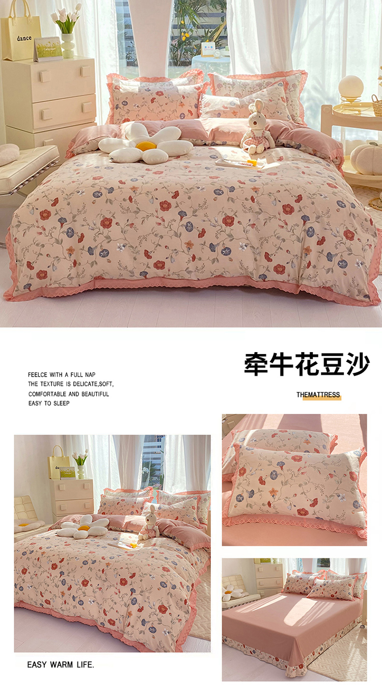 (总)艾米家居 2025秋冬新款牛奶绒泡泡印花花边四件套,豆沙条纹粉,蝴蝶花,太阳花