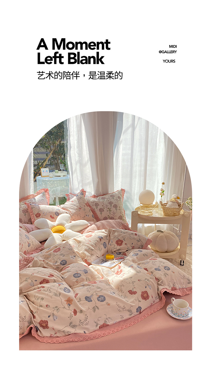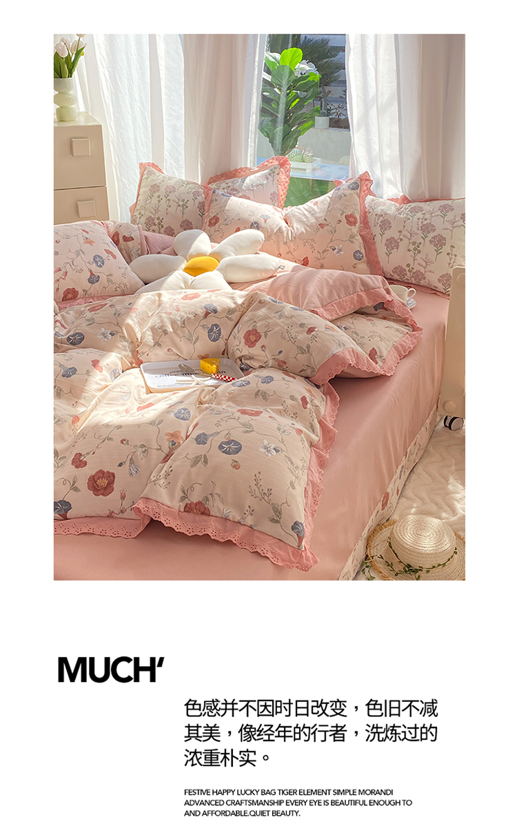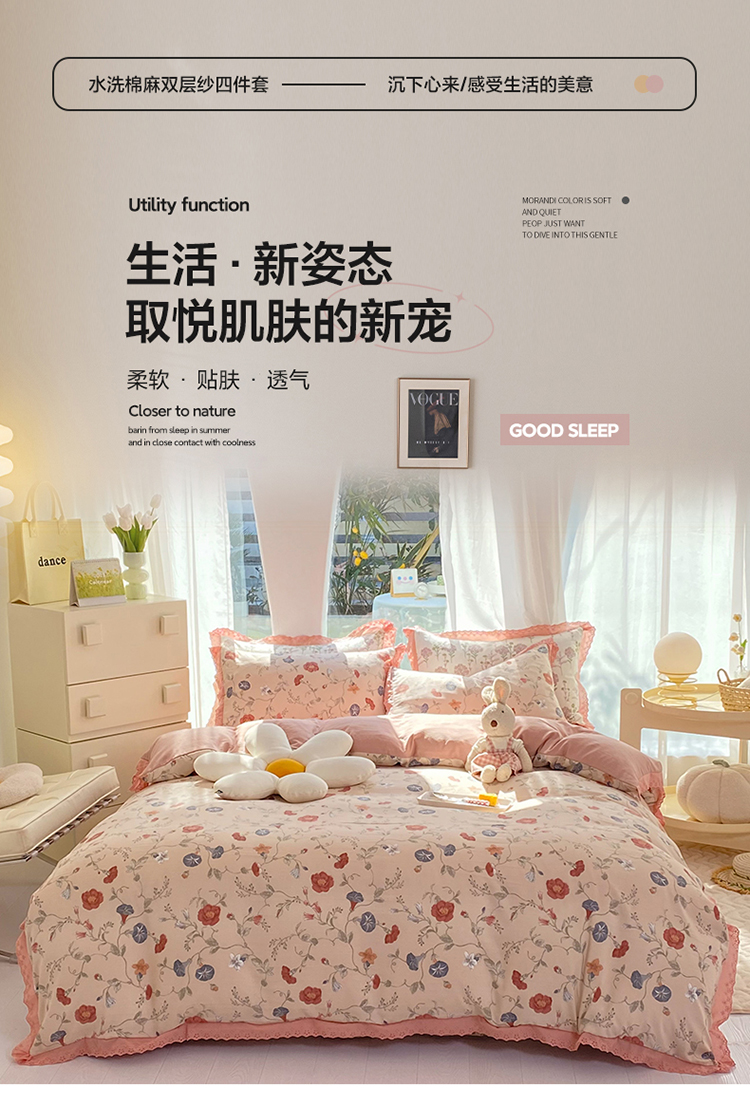 艾米 2023新款水洗棉麻双层纱系列四件套 牵牛花豆沙
