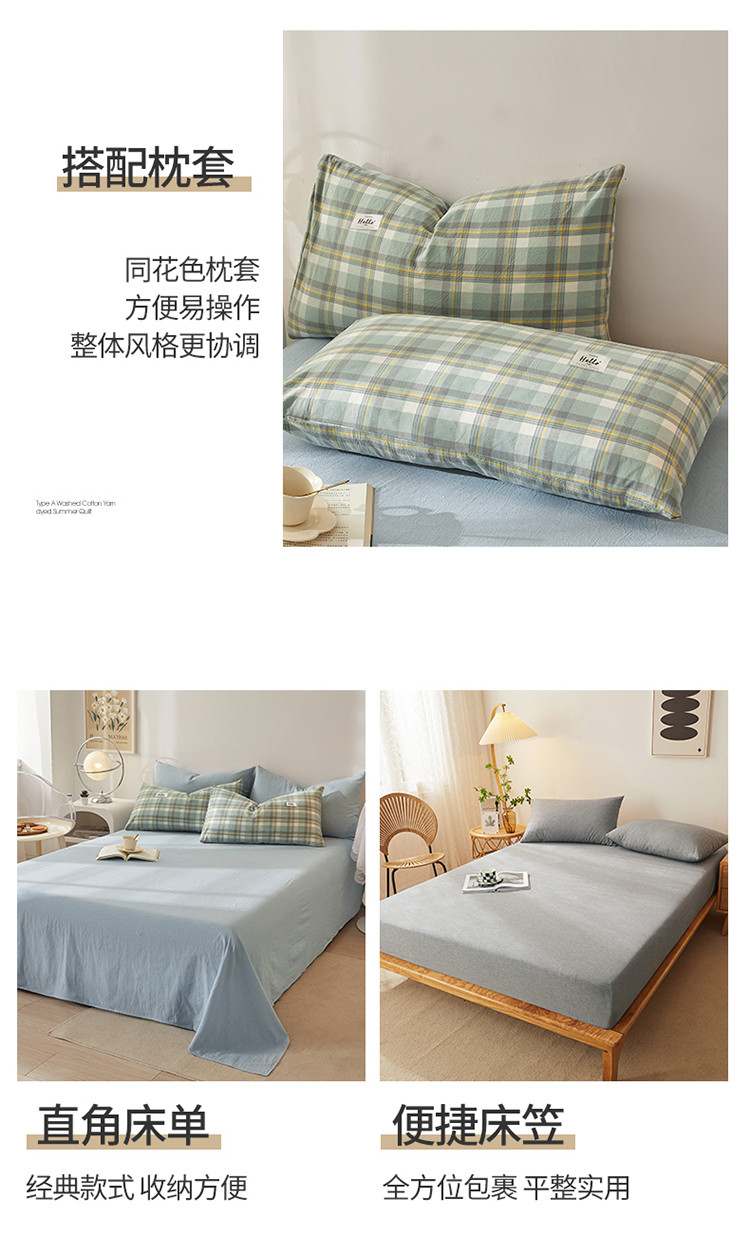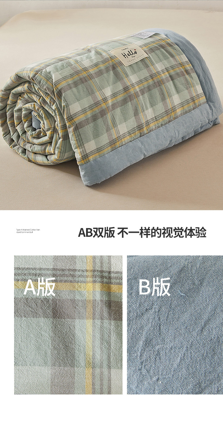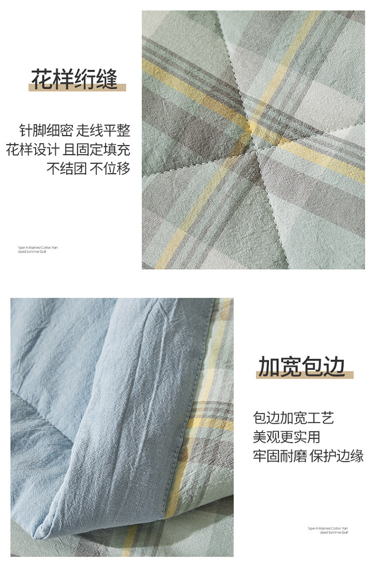 • 91家纺网 家纺一手货源 找家纺 恋人优选 2023新款A类全棉色织水洗棉夏被 莫妮绿