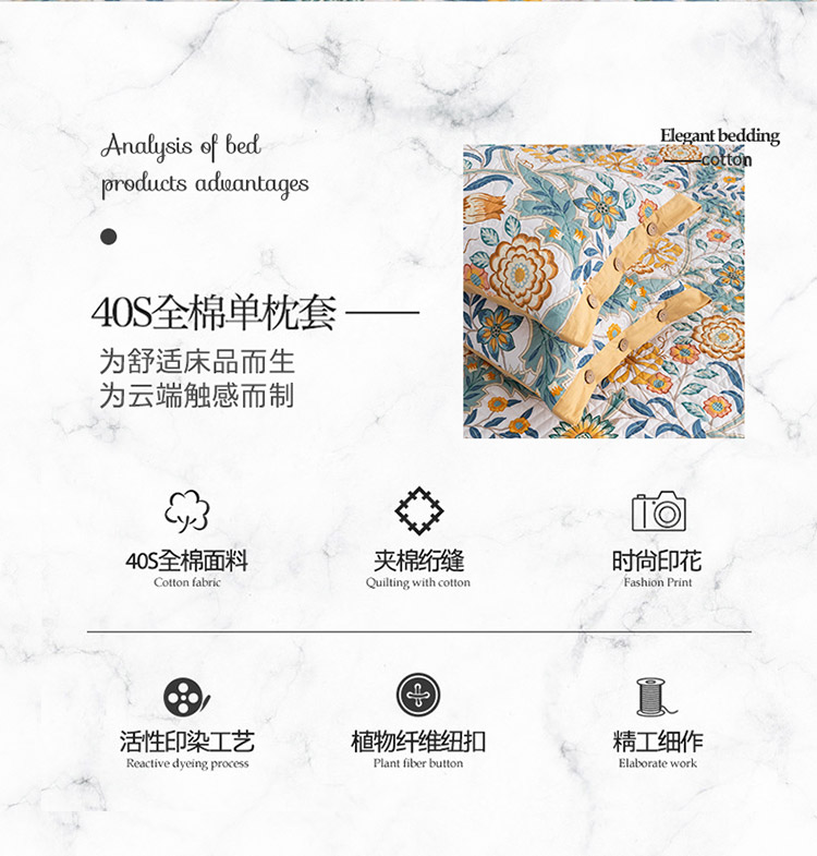 商品名称:优乐家纺 2023新款全棉印花绗绣系列2 单枕套 秋季物语