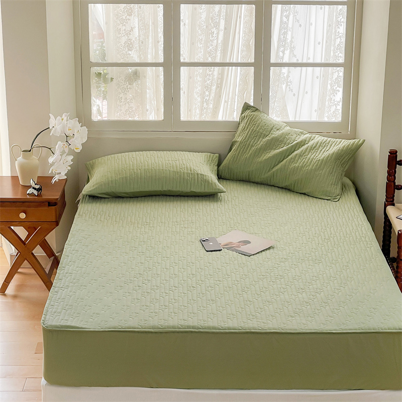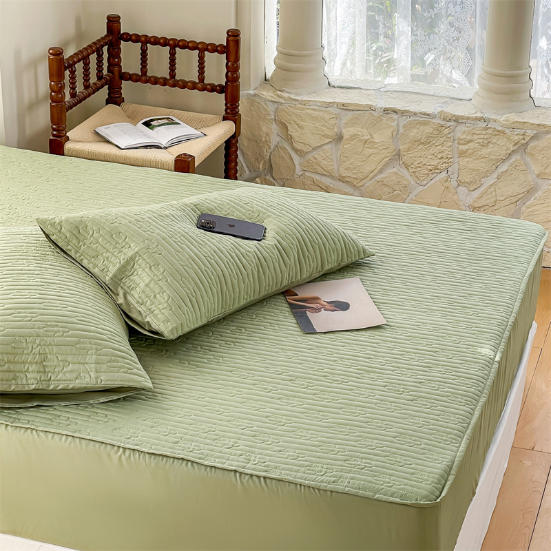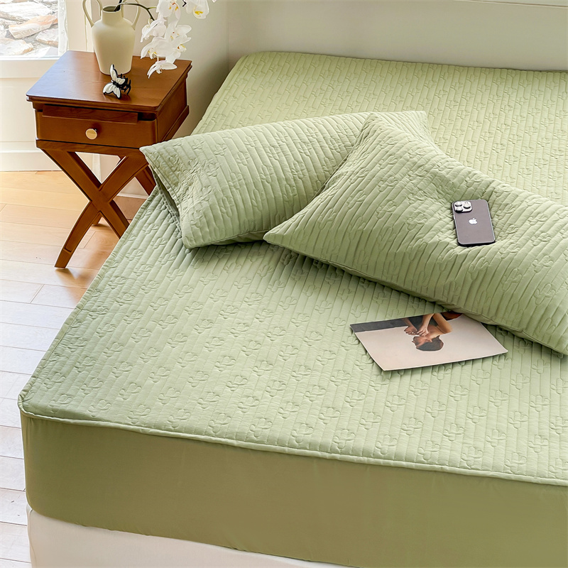 三味舒屋 2024新款仙人掌绗缝床笠 抹茶绿