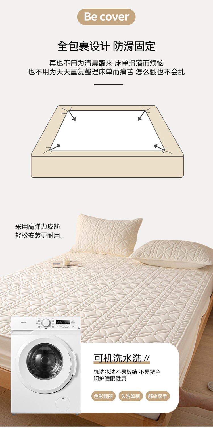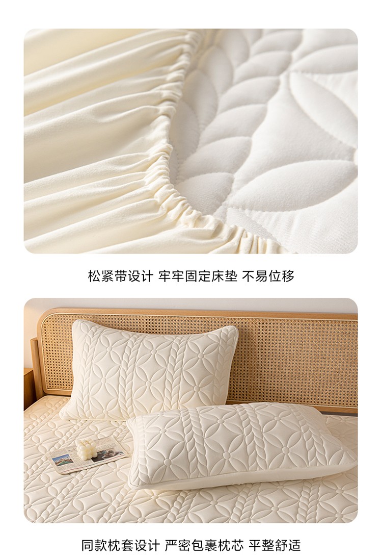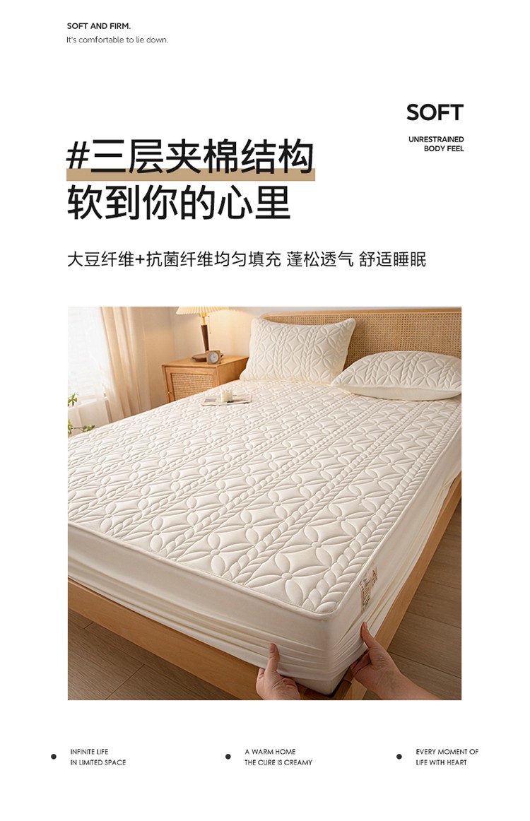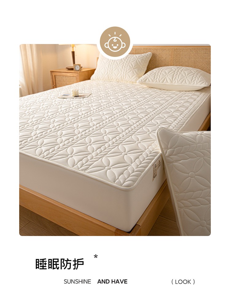 • 91家纺网 家纺一手货源 找家纺 芬晴 2023新款A类母婴级防水大豆夹棉床笠床垫保护套 米白