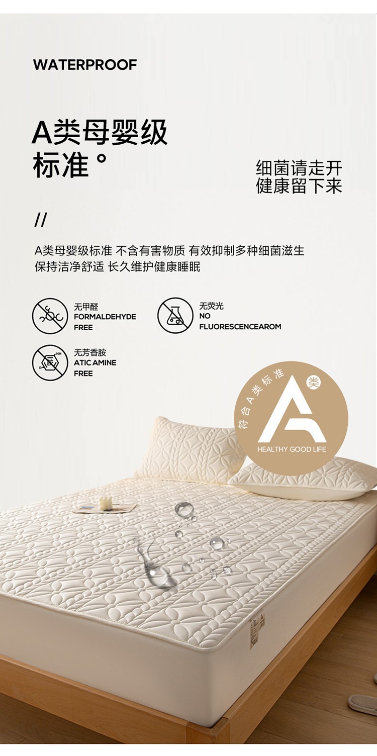 芬晴 2023新款A类母婴级防水大豆夹棉床笠床垫保护套 米白