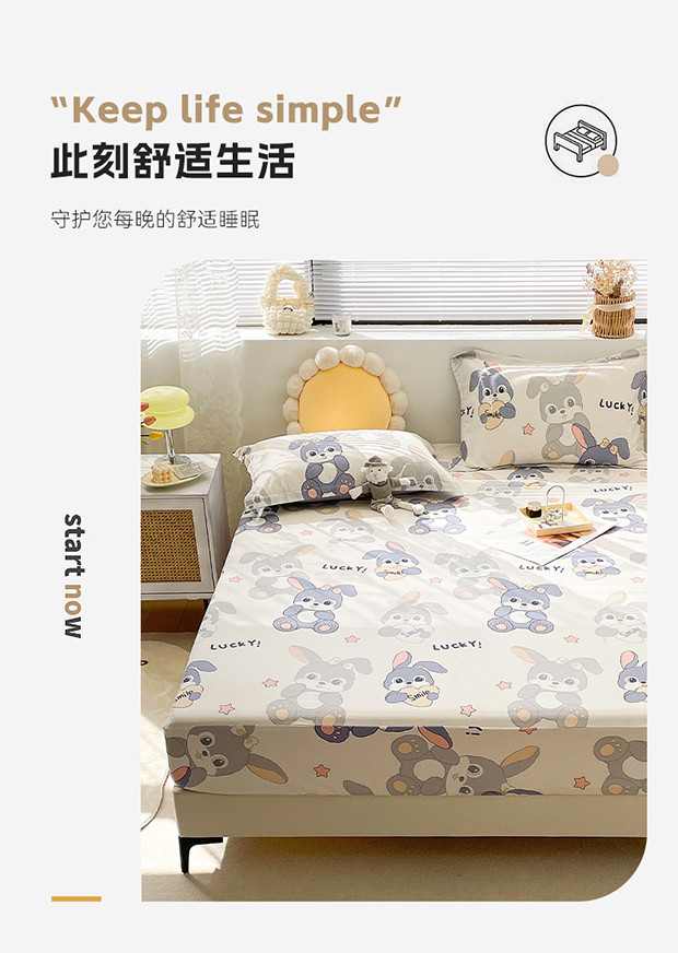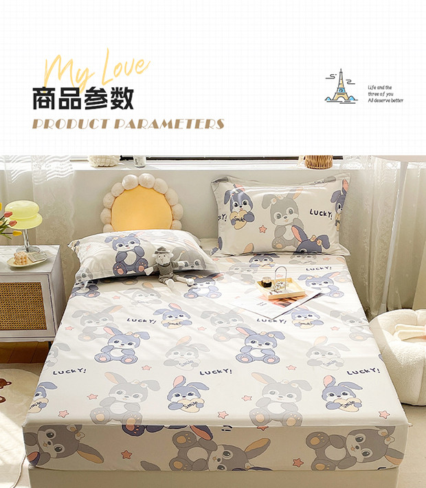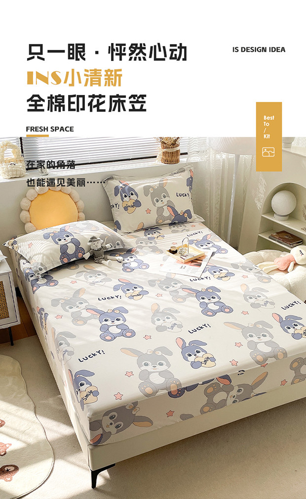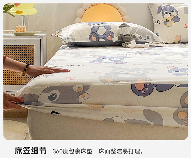 商品名称:绵庭 2023新款 全棉印花床笠 发财兔