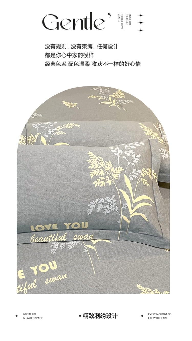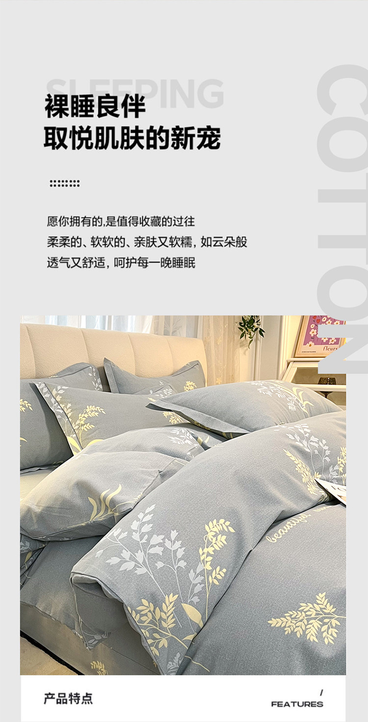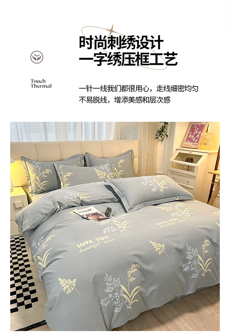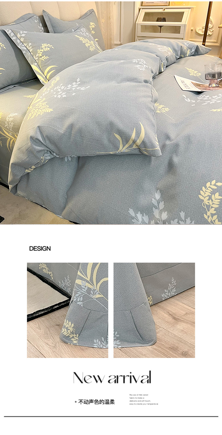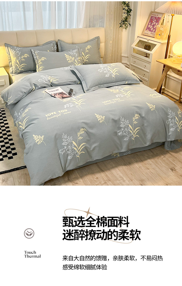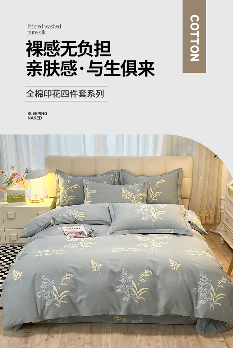 幸嘉轩 2025新款全棉秋冬加厚保暖喷气磨毛纯棉印花四件套 浅浅花香灰