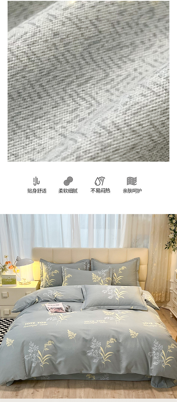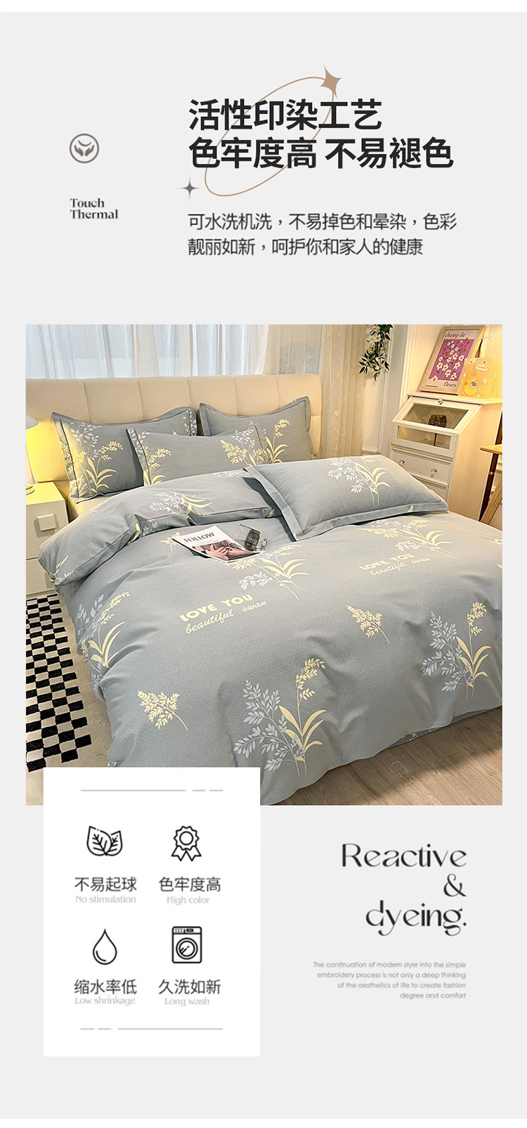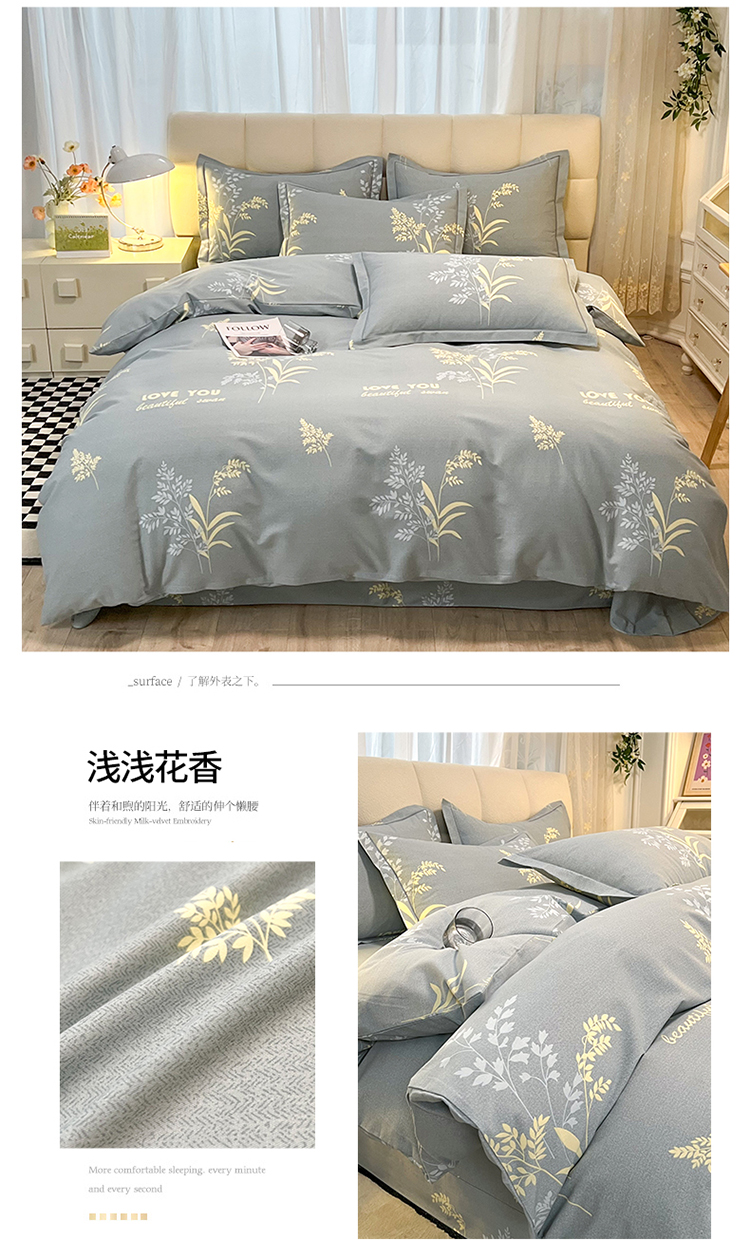 商品名称:幸嘉轩 2025新款全棉秋冬加厚保暖喷气磨毛纯棉印花四件套 浅浅花香灰
