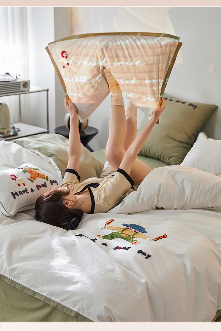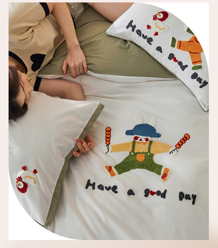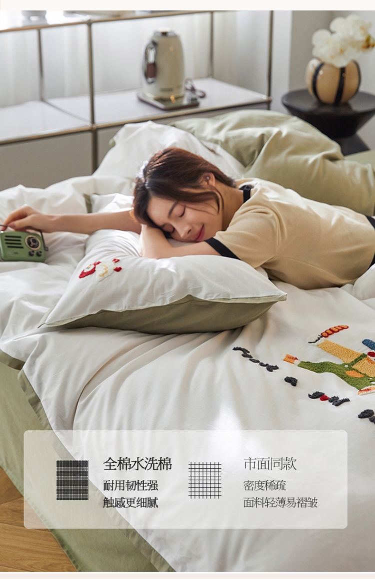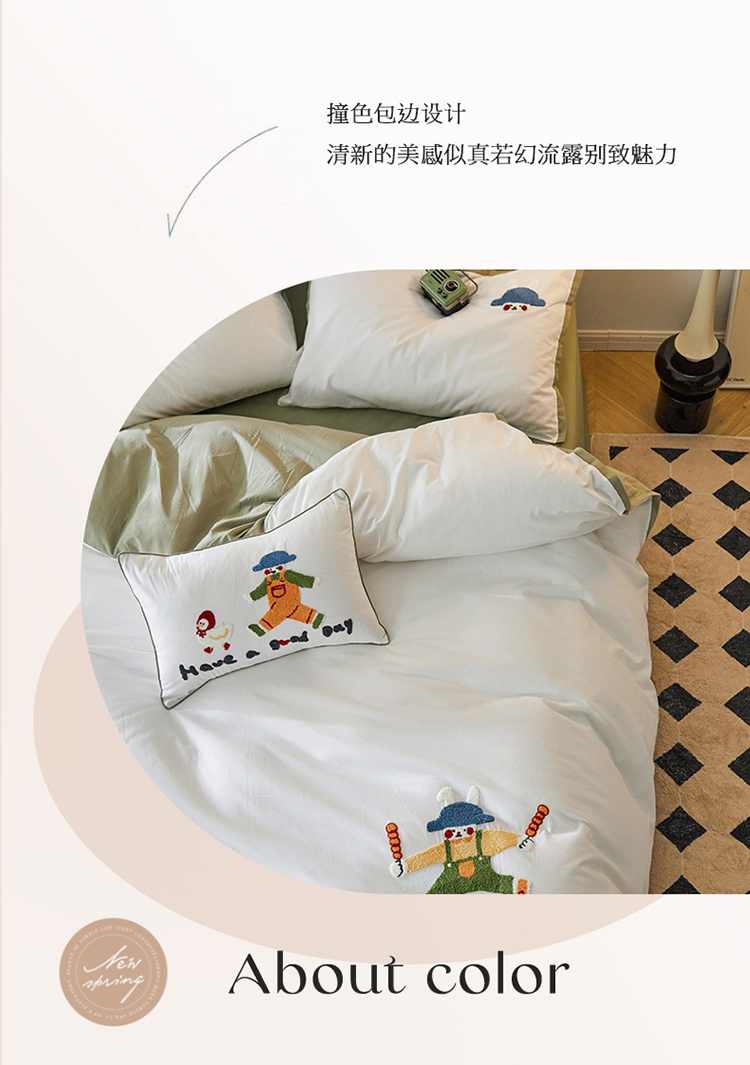 (总)名品优仓2023新款毛巾绣撞色荷叶边四件套,拾光兔,铃兰花开,爱丽兔,太阳花清爽绿,太阳花芝芝奶绿,兔然暴富