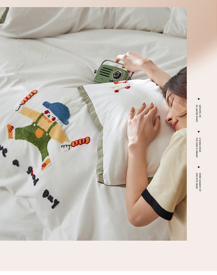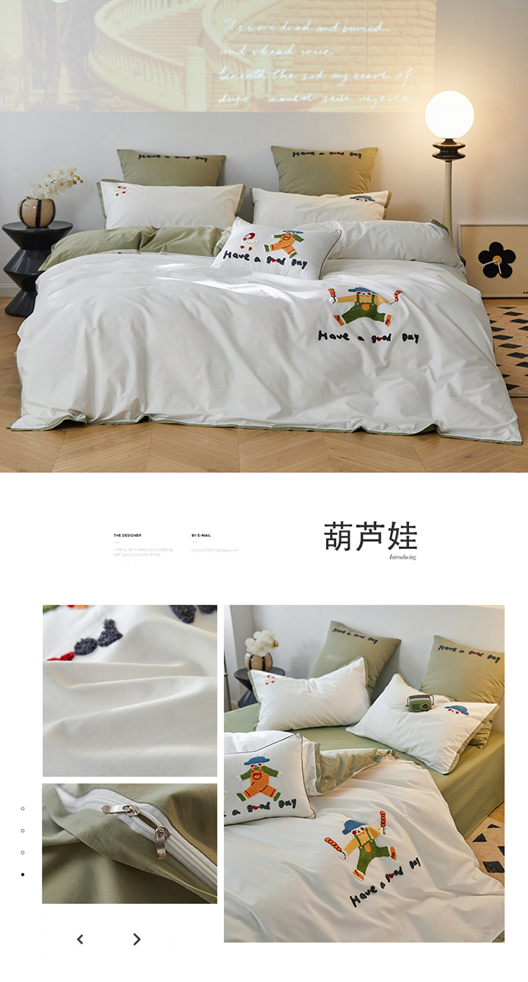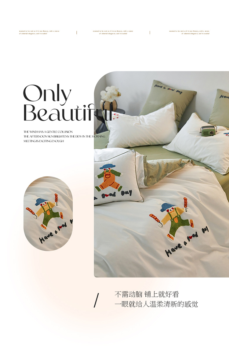 名品优仓 2023新款水洗棉毛巾绣撞边款式四件套-玫瑰熊 葫芦娃