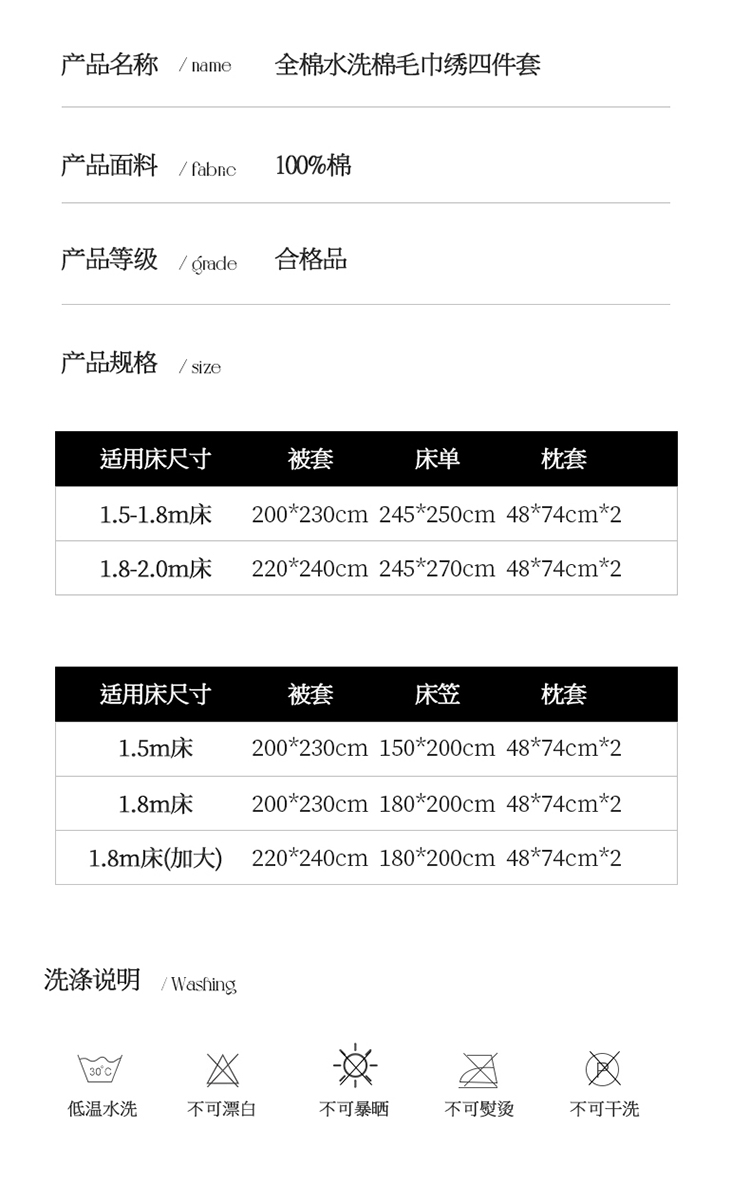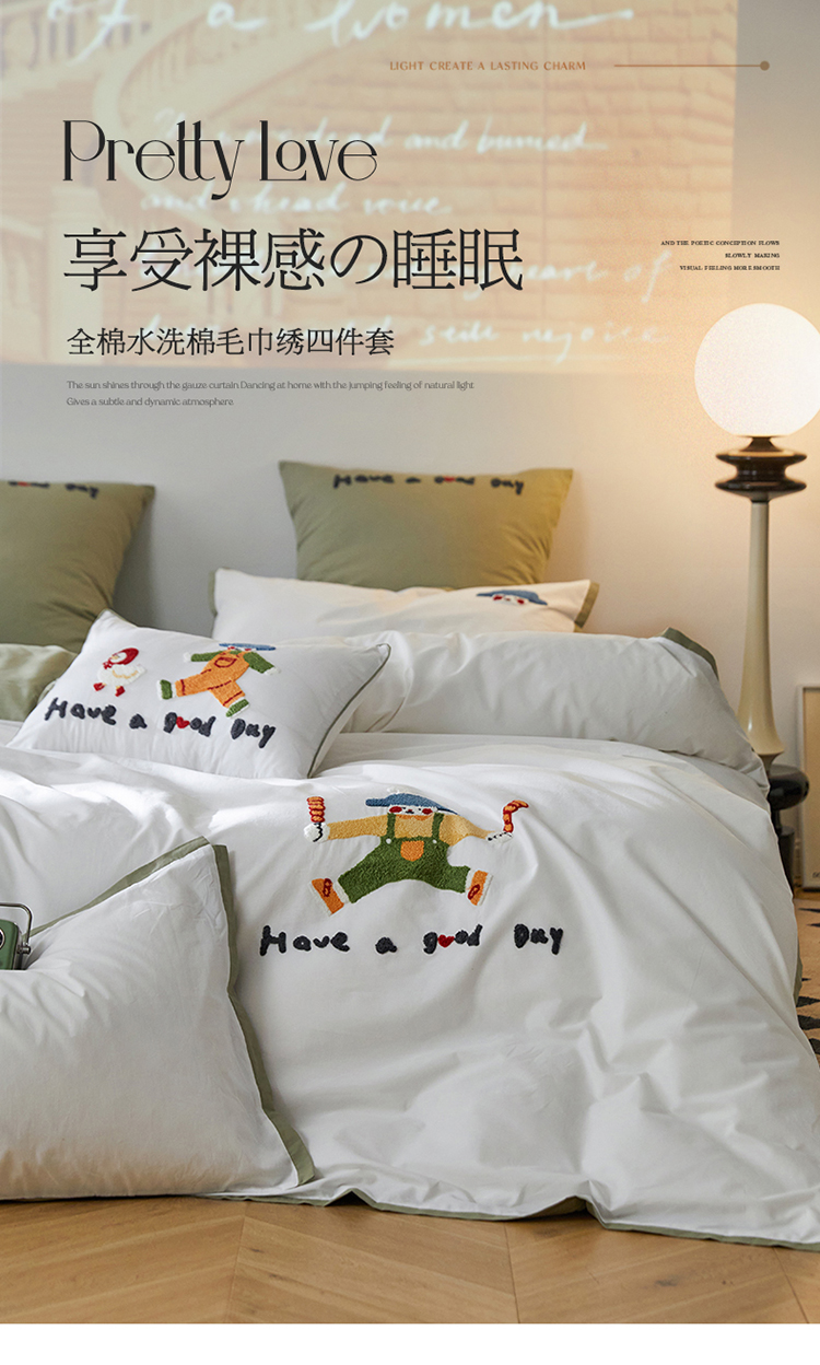 名品优仓 2023新款水洗棉毛巾绣撞边款式四件套-玫瑰熊 风信子-玲月白,风信子-玲月白
