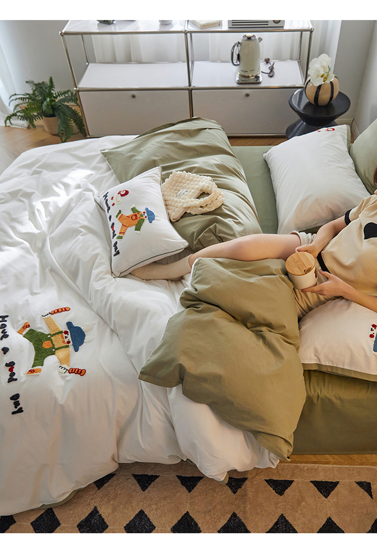 (总)名品优仓2023款水洗棉三层纱提花四件套-狡花系列,狡花白,狡花豆粉,狡花黄,狡花蓝色,狡花绿,狡花少女粉