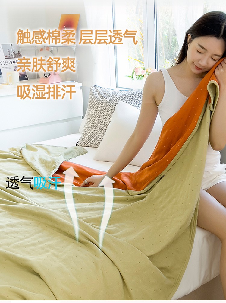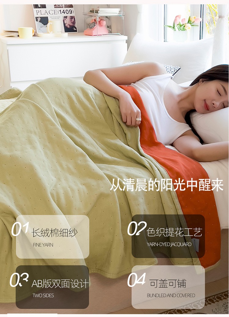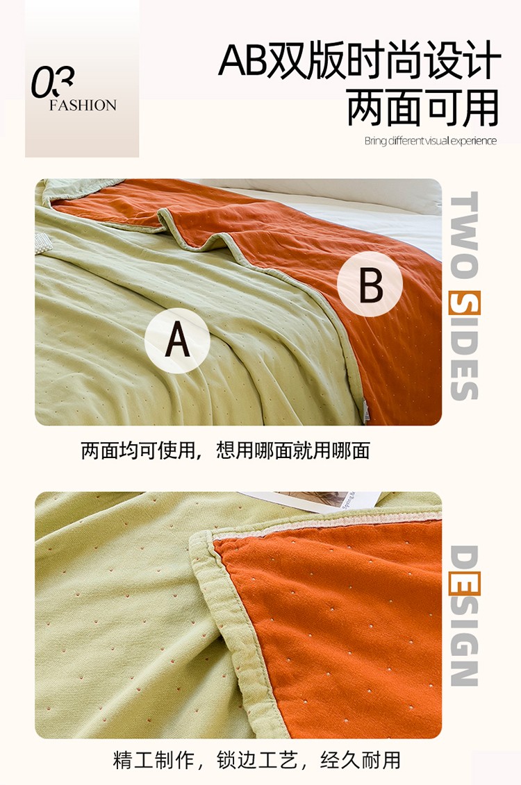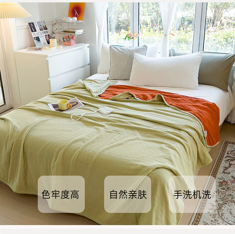 商品名称:棠薇家纺 2023新款AB版双拼色盖毯毛巾被 满天星抹茶+橘红