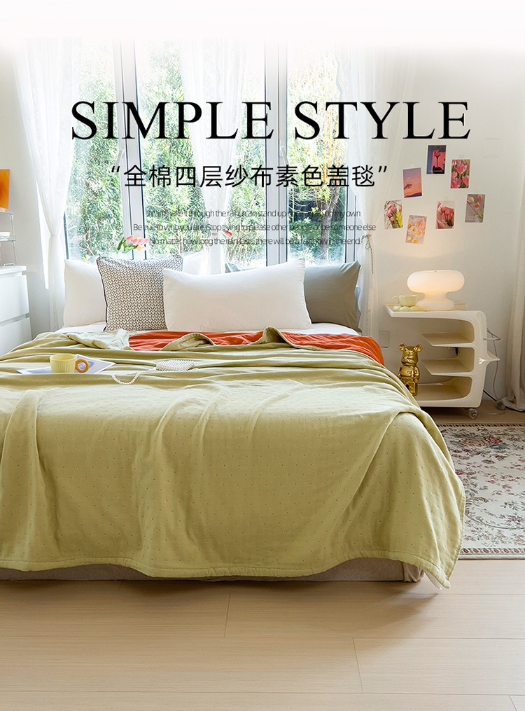 棠薇家纺 2023新款AB版双拼色盖毯毛巾被 满天星抹茶+橘红