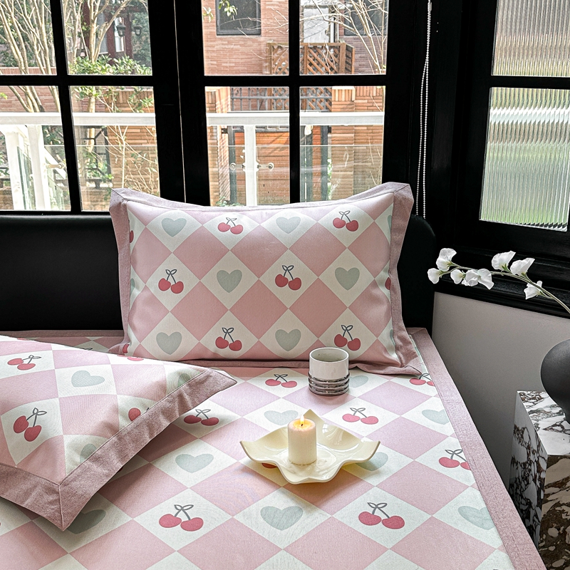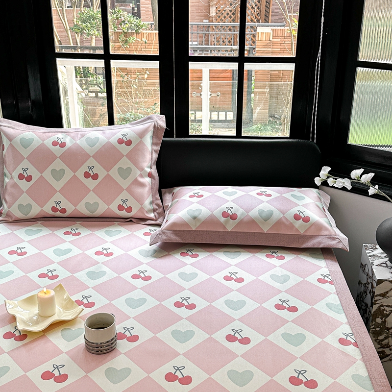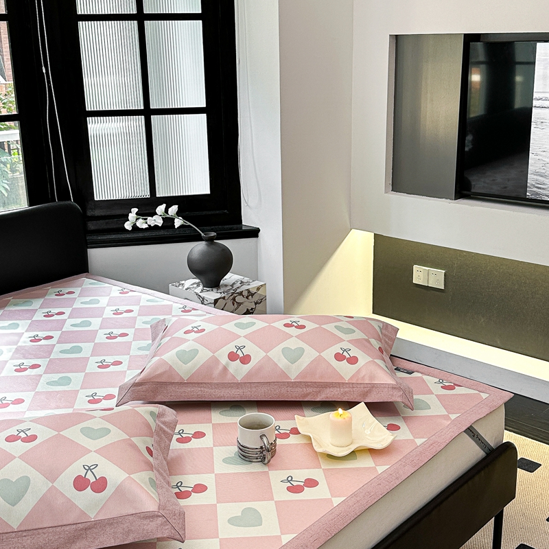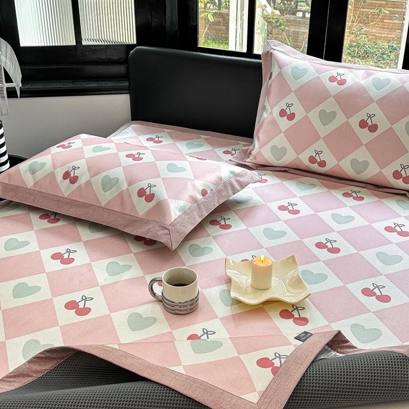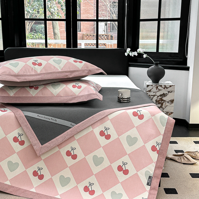 本希家居 2023新款时尚高端款冰丝席 粉格樱桃-平席