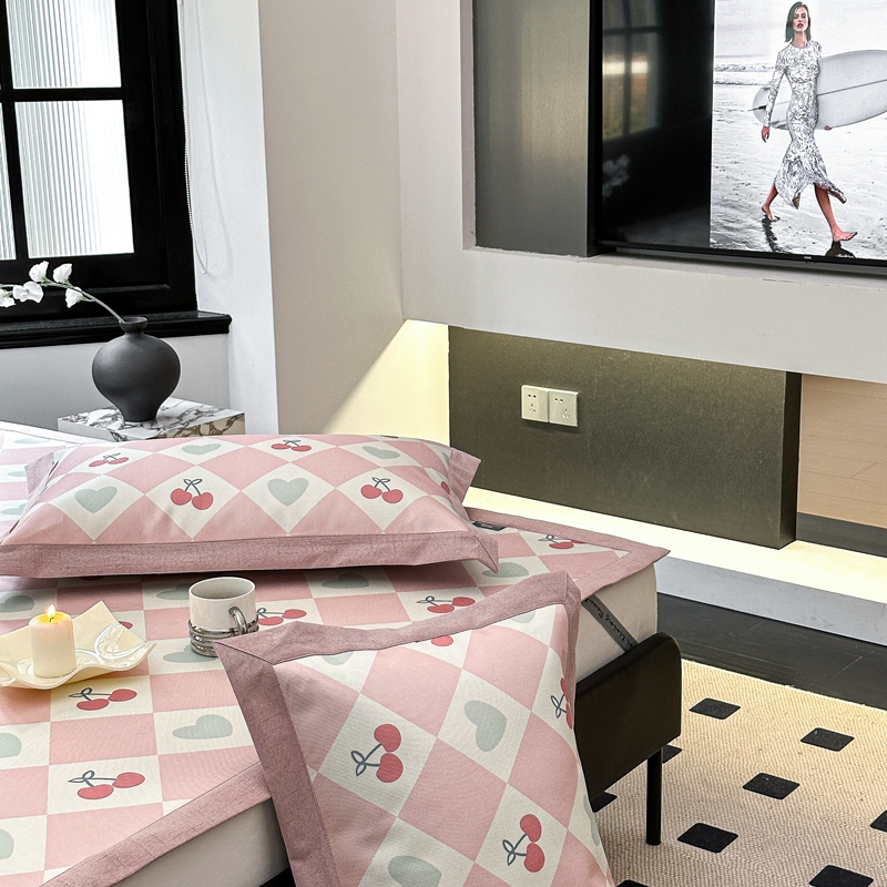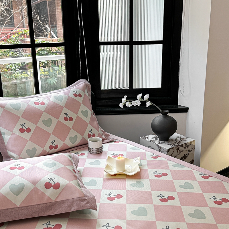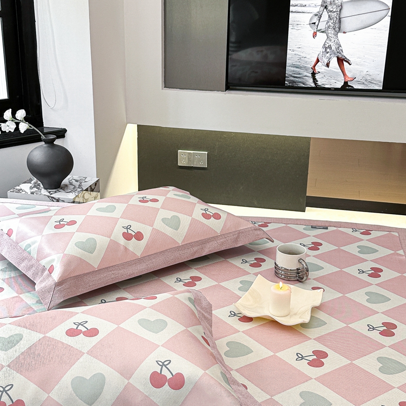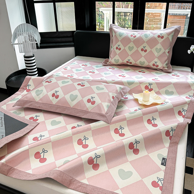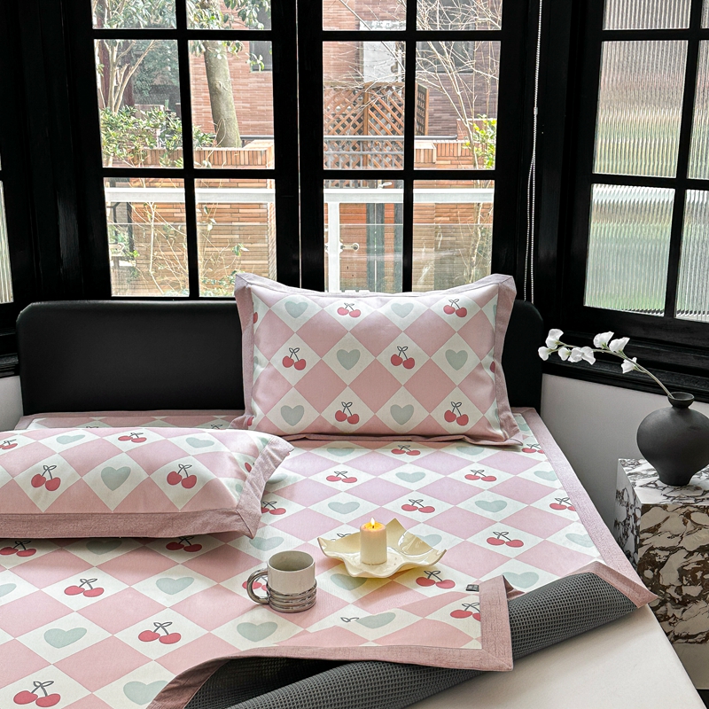 本希家居 2023新款时尚高端款冰丝席 粉格樱桃-平席