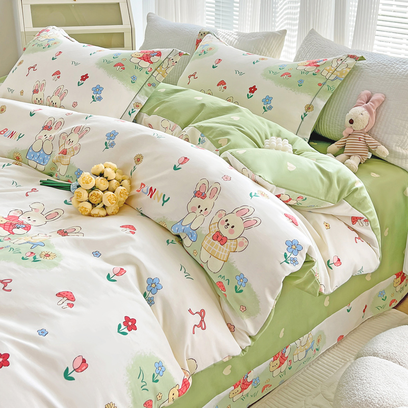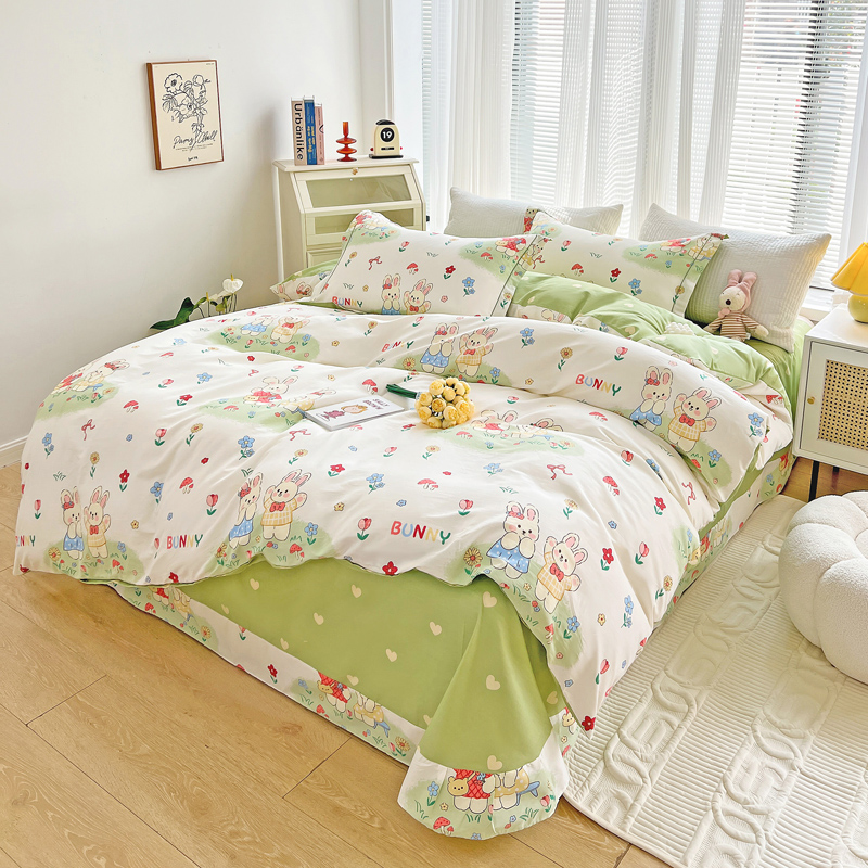 (总)乐童家纺 2026新款全棉纯棉拼接花边小清新工艺款四件套,彩虹木马,春日小兔,花田兔兔,凯莉梦境,口袋故事,浪花轻歌,毛线彩虹,梦境手账,千禧少女咖,少女日记,心跳瞬间