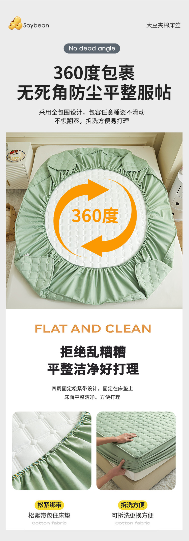 (总)给笠 2024新款全棉方格大豆夹棉床笠