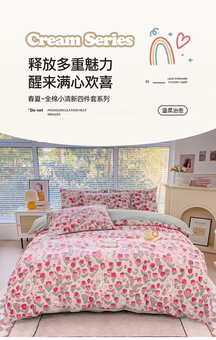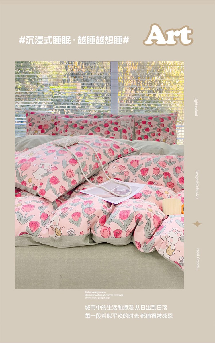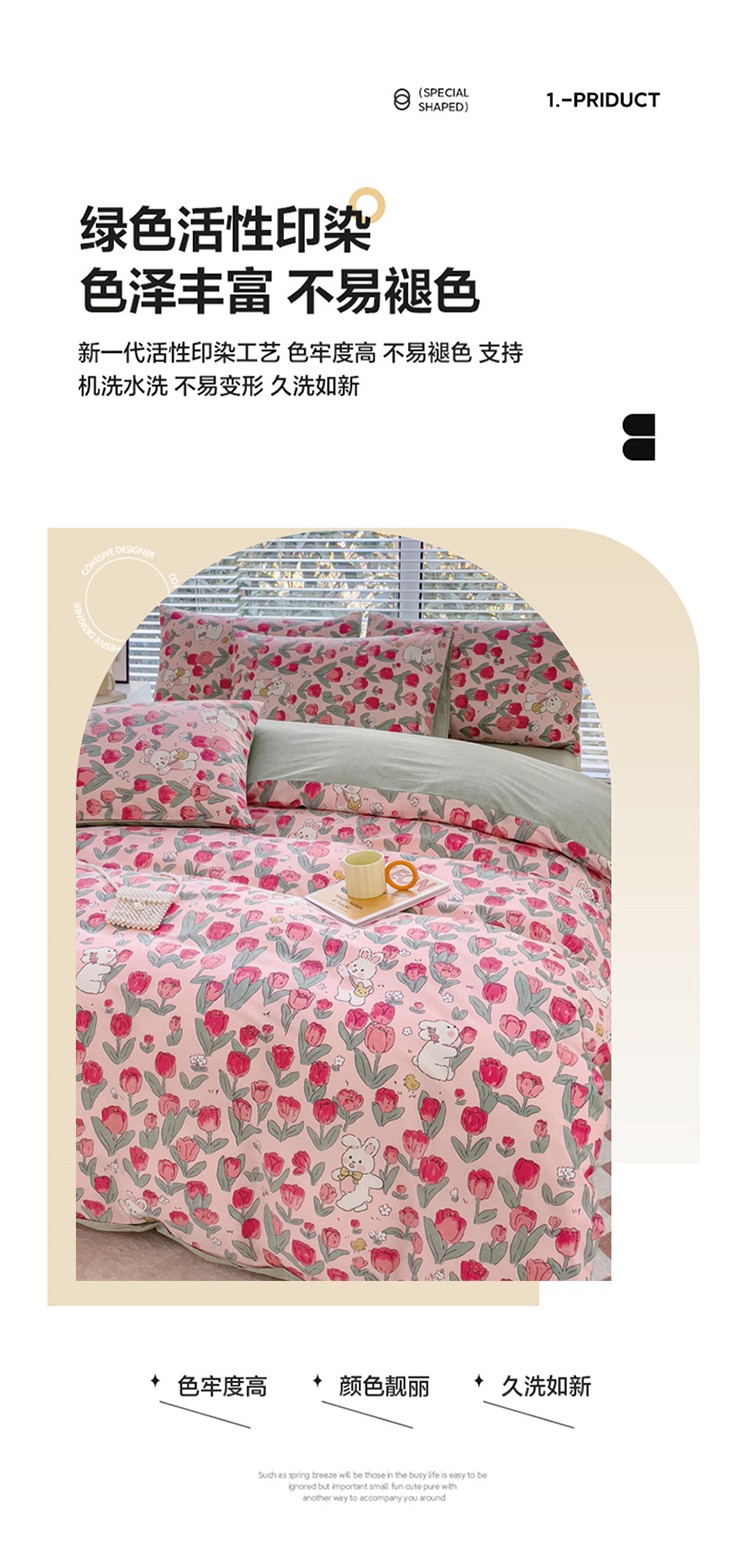 (总)珺柔家纺 2023新款13372全棉印花四件套,朵拉花园,粉色郁金香 ,可爱兔,迷你兔,太阳花,顽皮狗,喜结连理,薰衣草