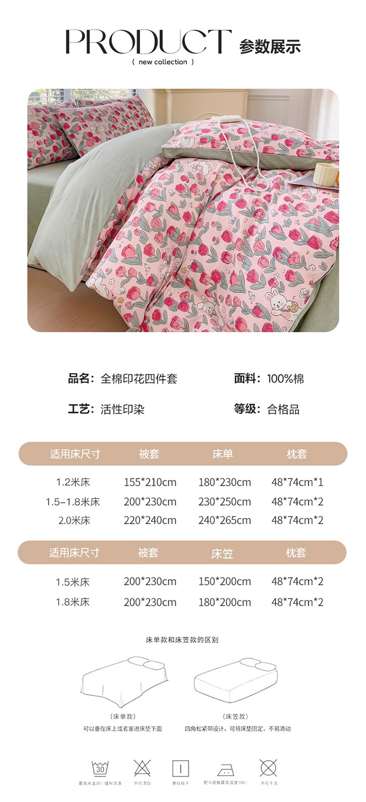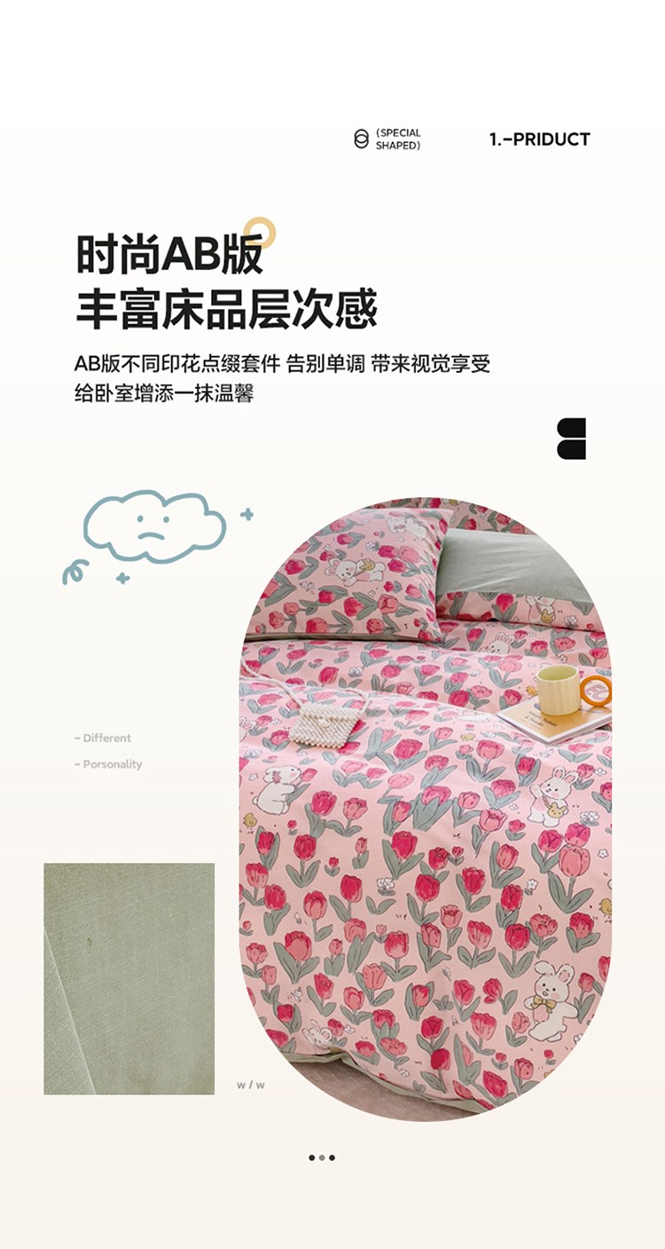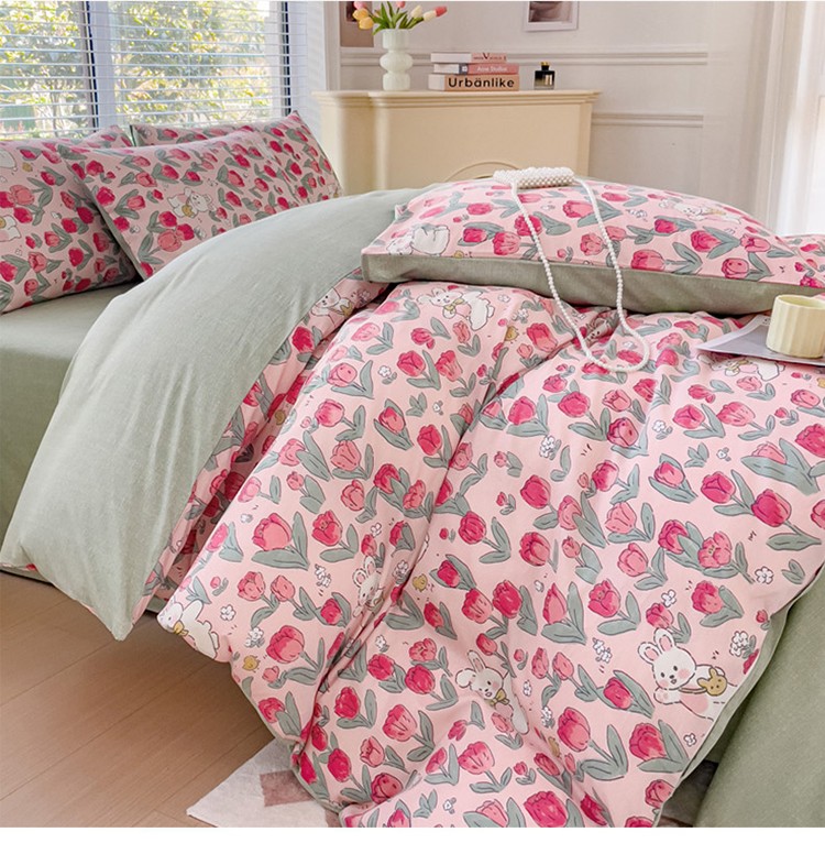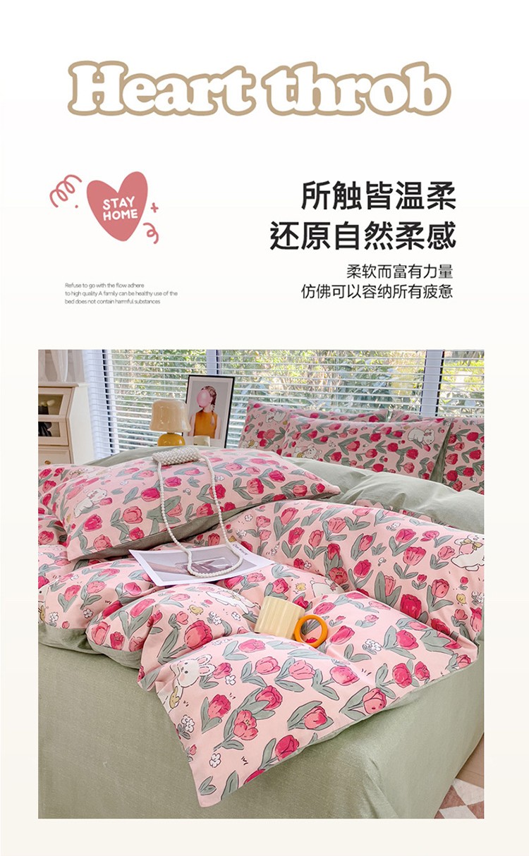 (总)珺柔家纺 2023新款13372全棉印花四件套,朵拉花园,粉色郁金香 ,可爱兔,迷你兔,太阳花,顽皮狗,喜结连理,薰衣草