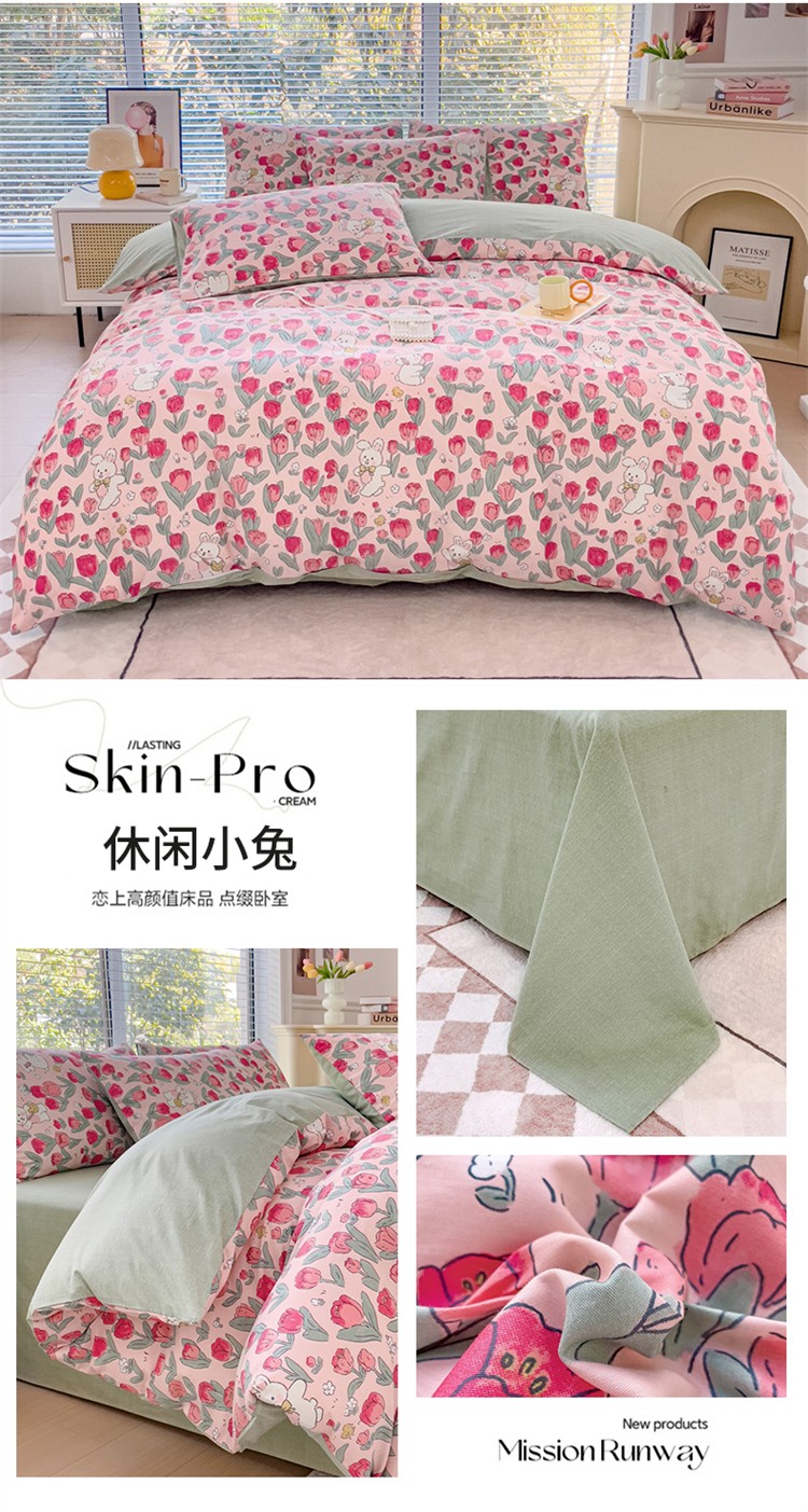 商品名称:珺柔 2023新款13372全棉印花四件套 休闲小兔