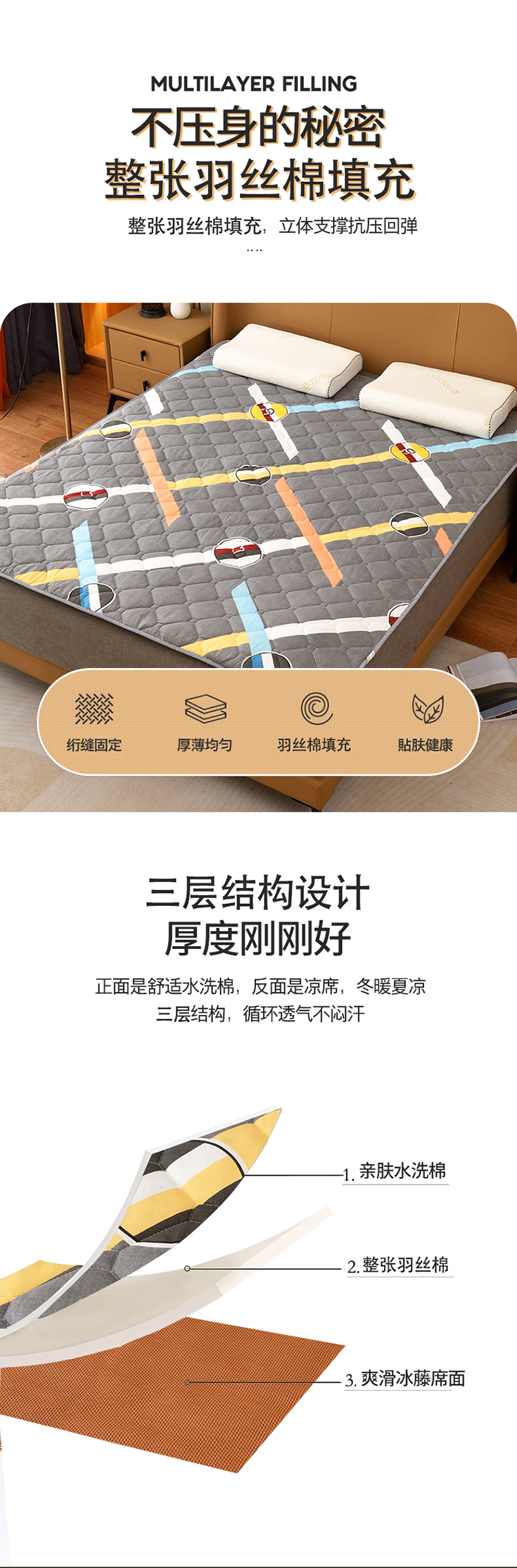 (总)张先生2024水洗棉冰藤席双面2cm厚床垫