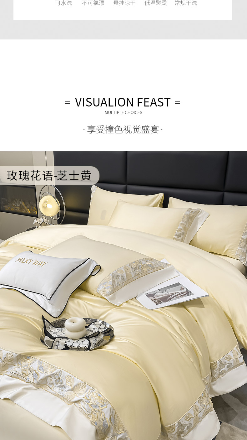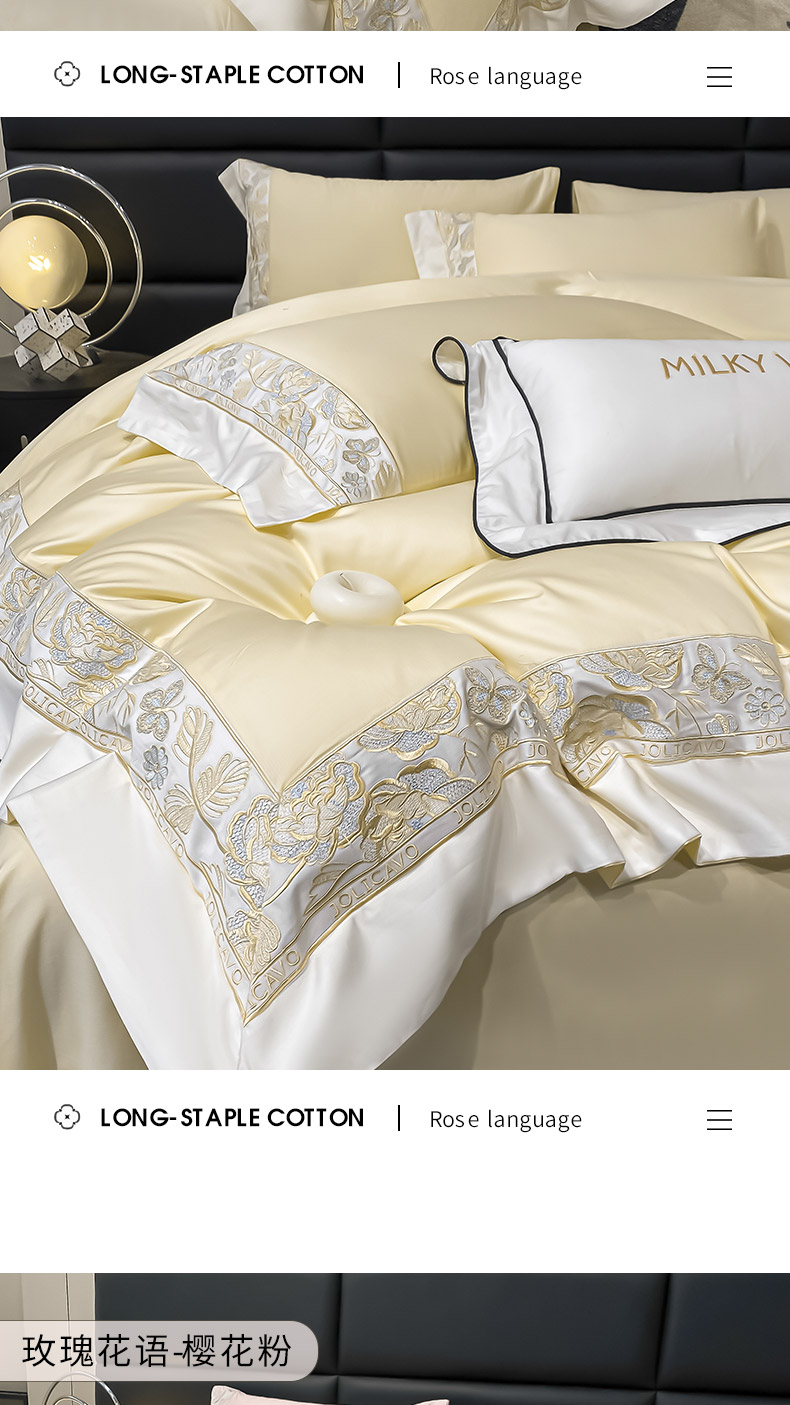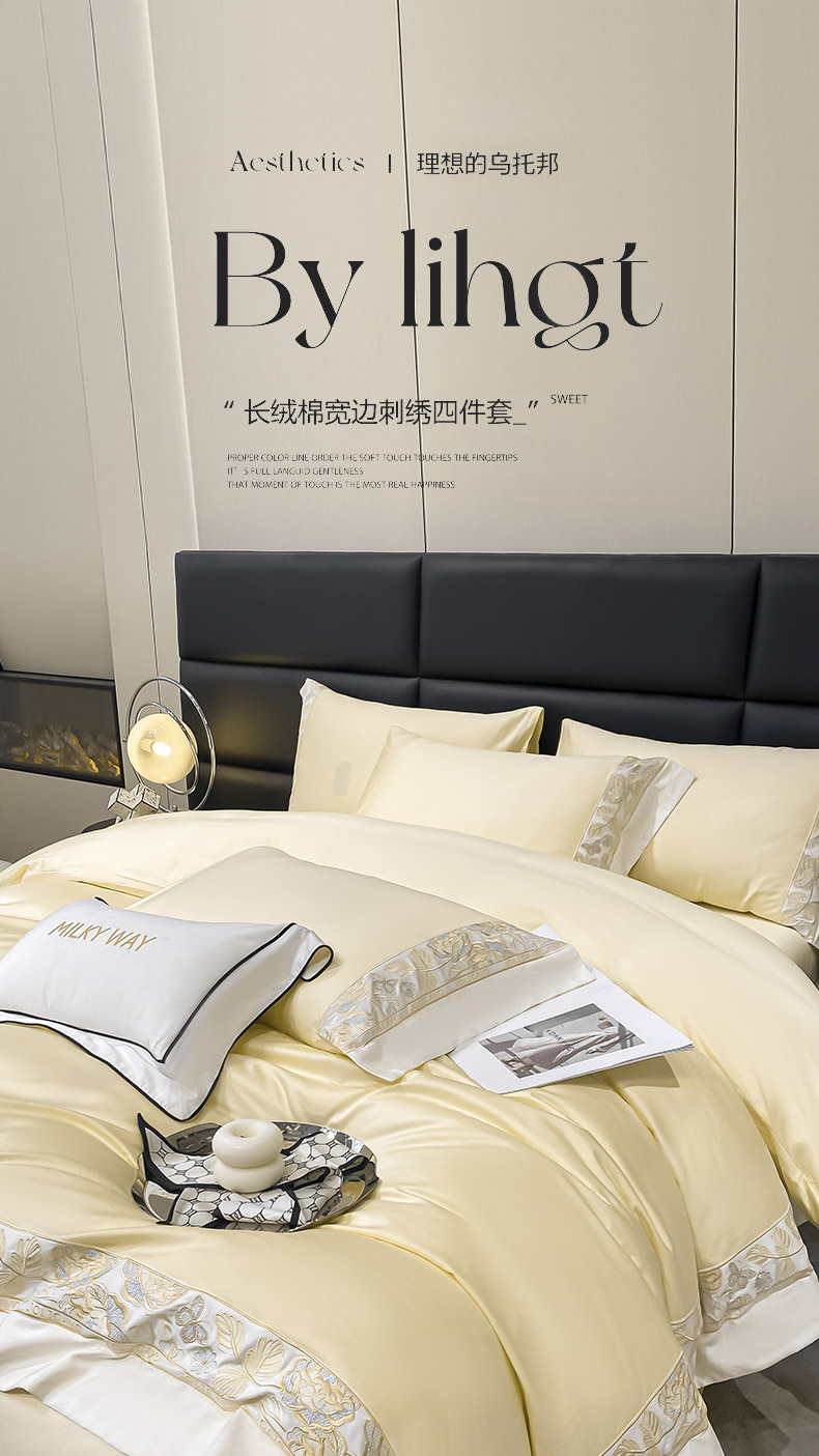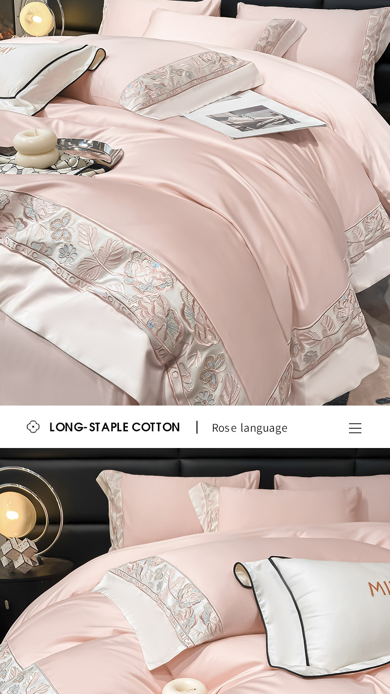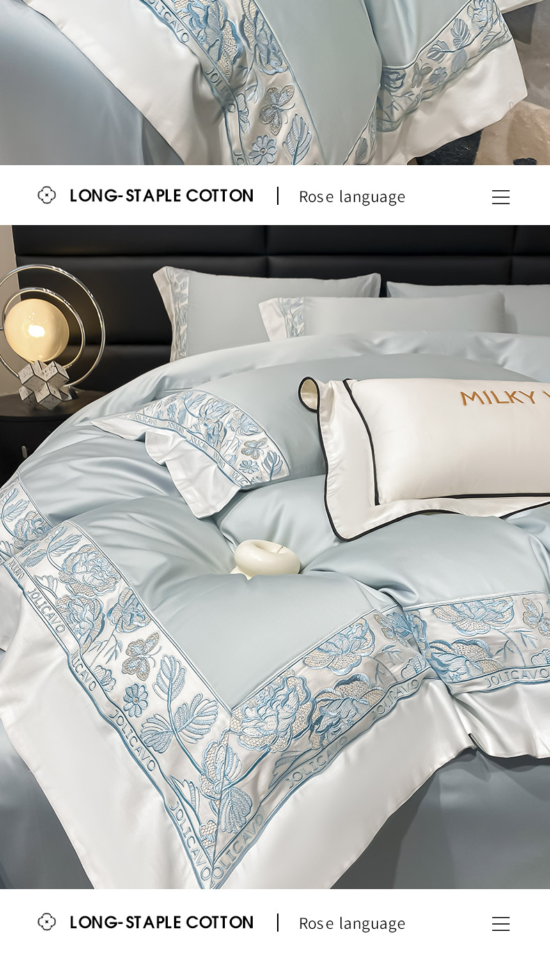 当前位置: 91家纺网 > 商品网购 > 床品套件 > 四件套 > 长绒棉四件套 > 2023新品100支长绒棉四件套纯棉全棉纯色拼接床单被套刺绣床上用品
