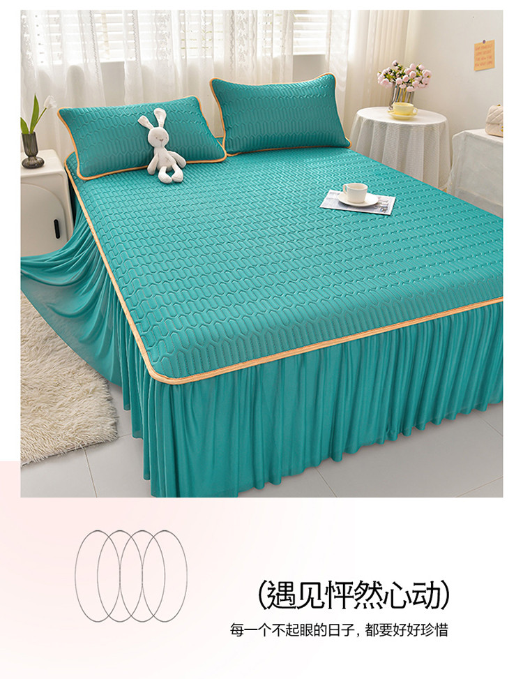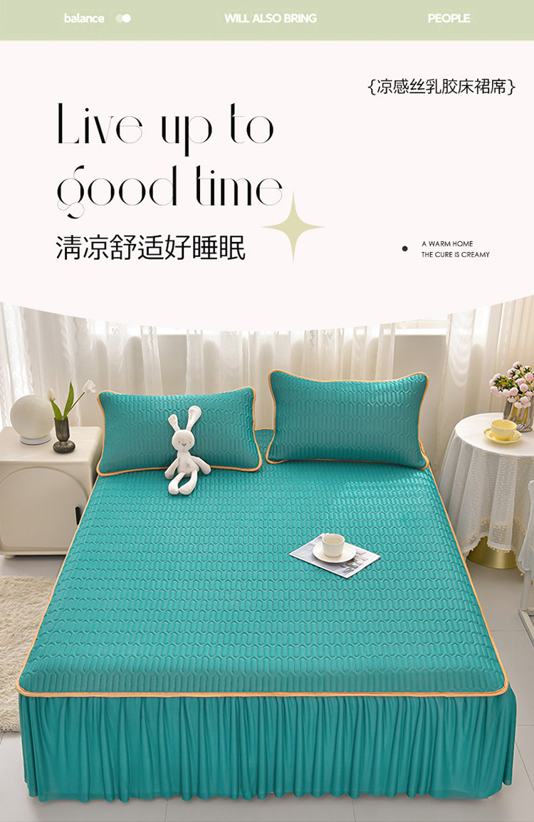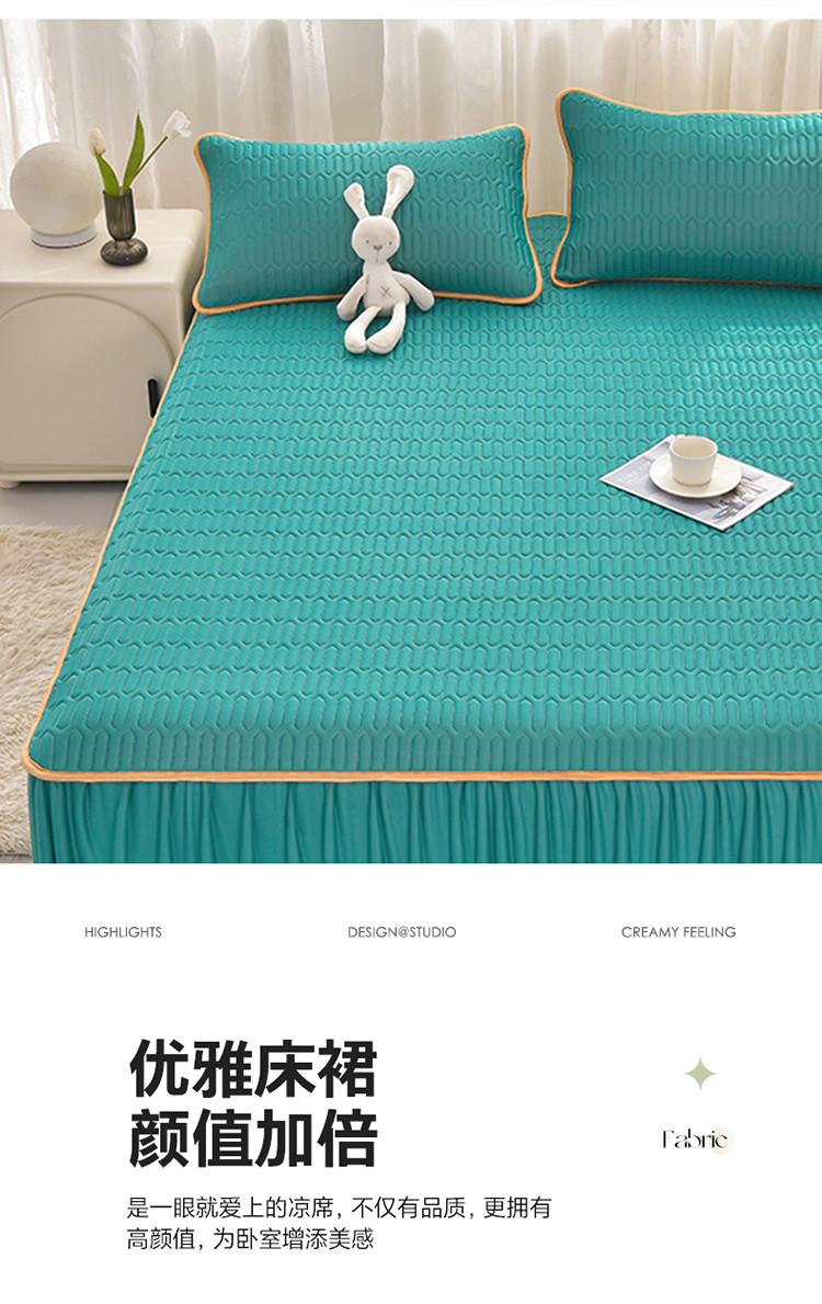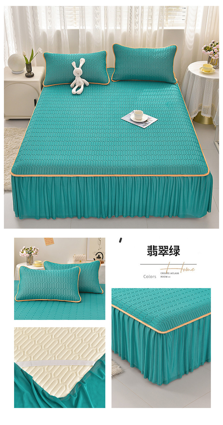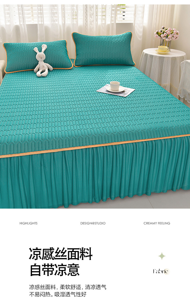 商品名称:诺梵家纺 2024新款0.5凉感丝乳胶凉席床裙款三件套 翡翠绿