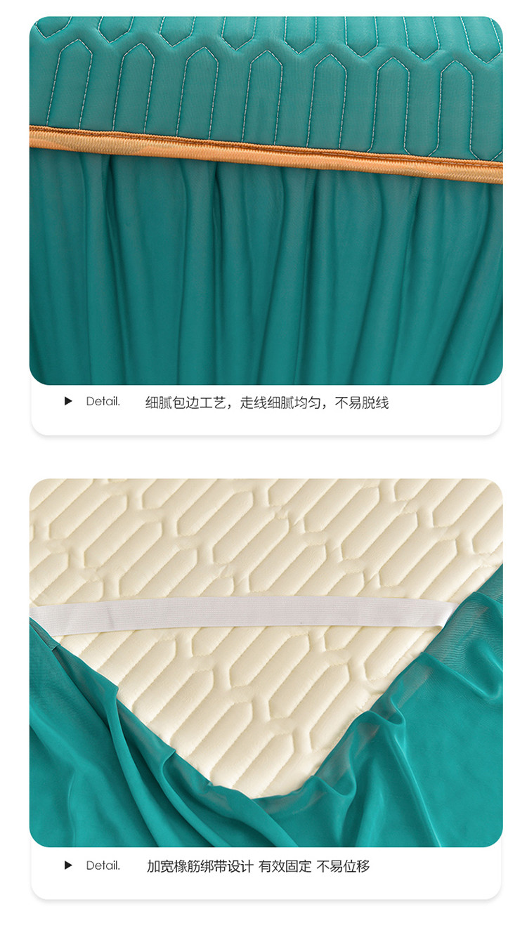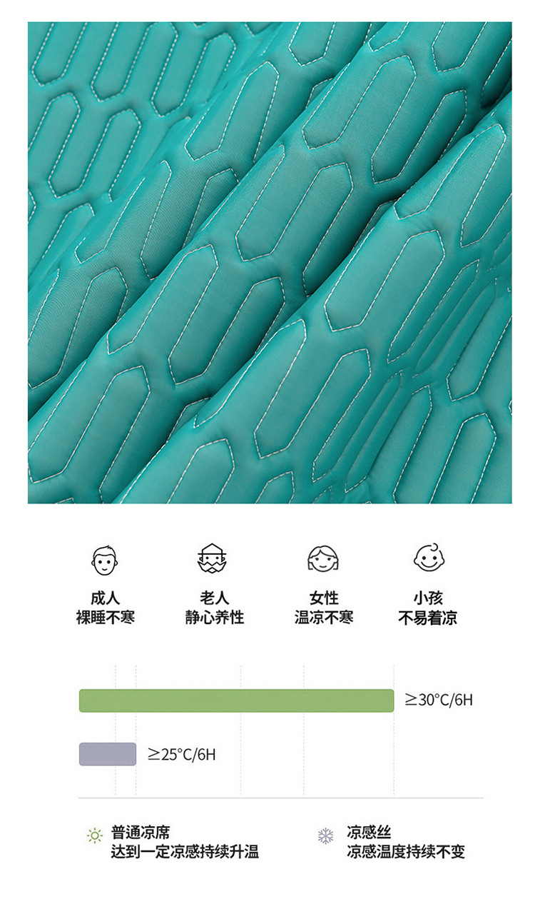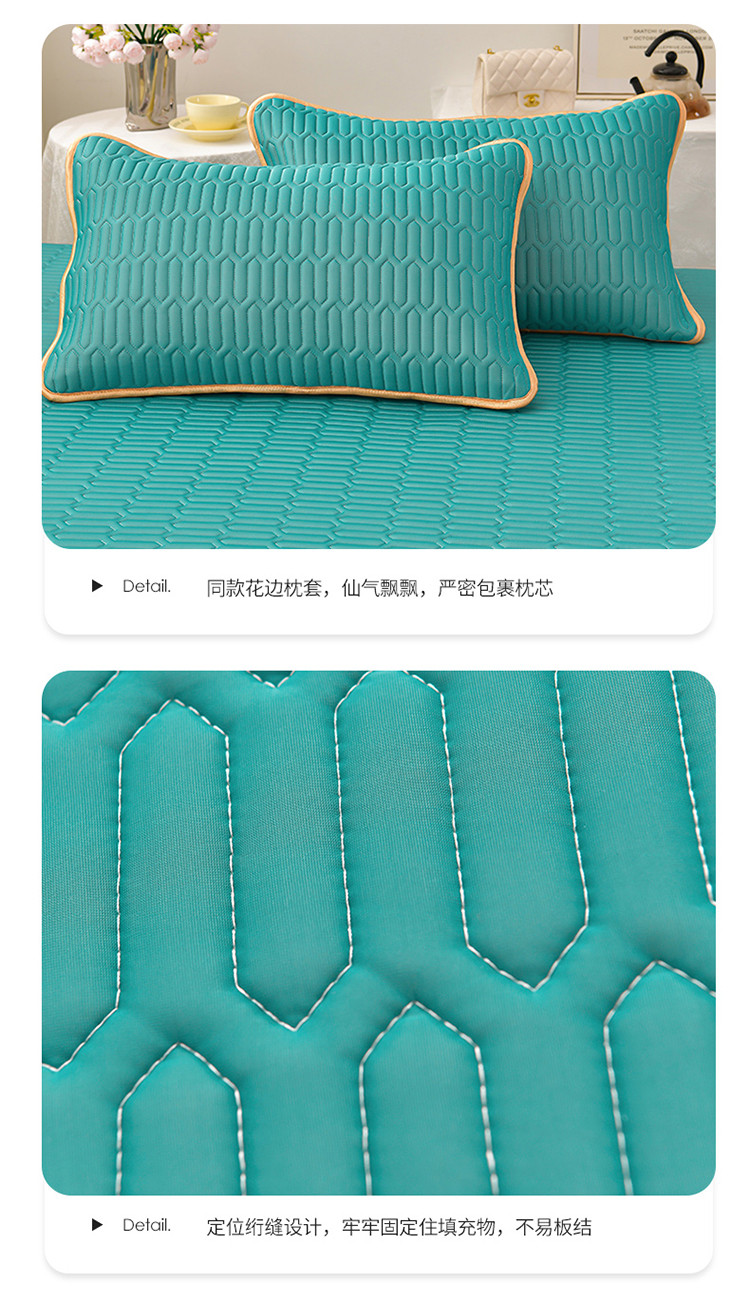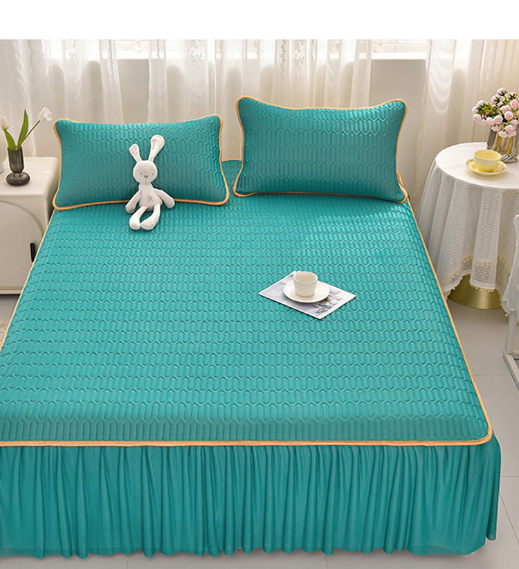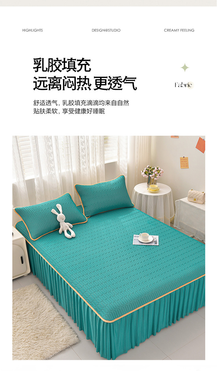 商品名称:诺梵家纺 2024新款0.5凉感丝乳胶凉席床裙款三件套 翡翠绿
