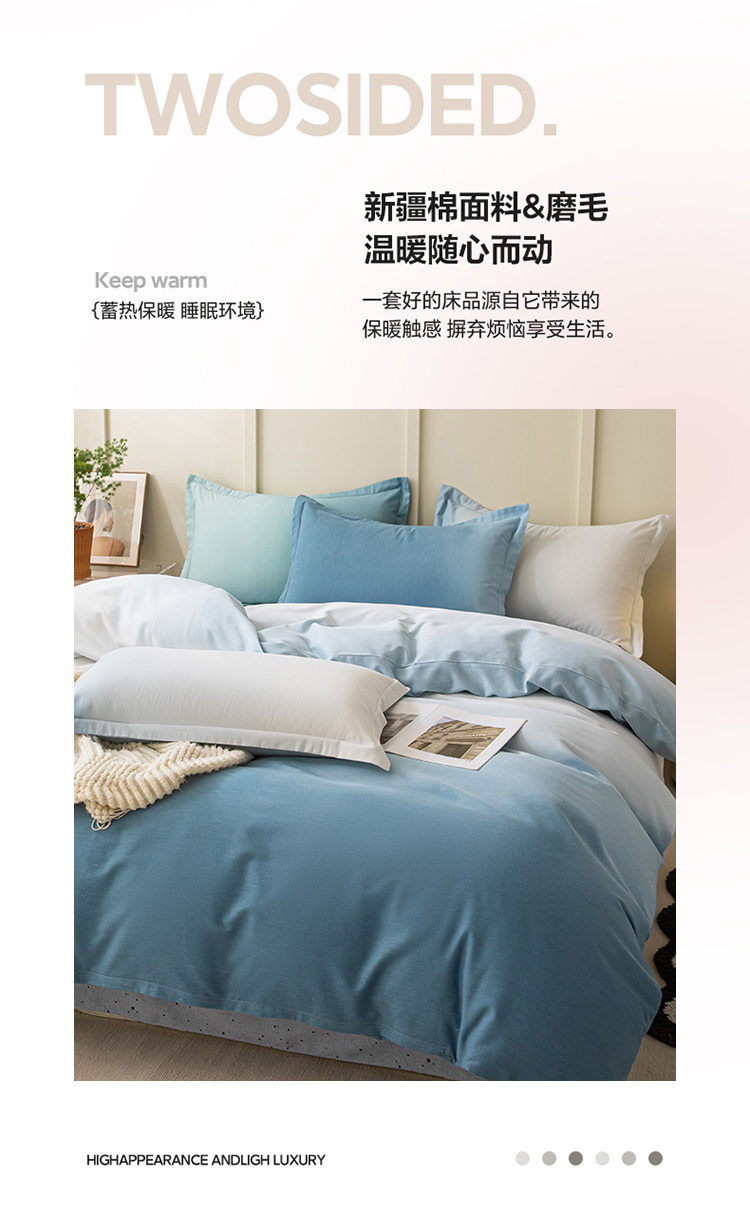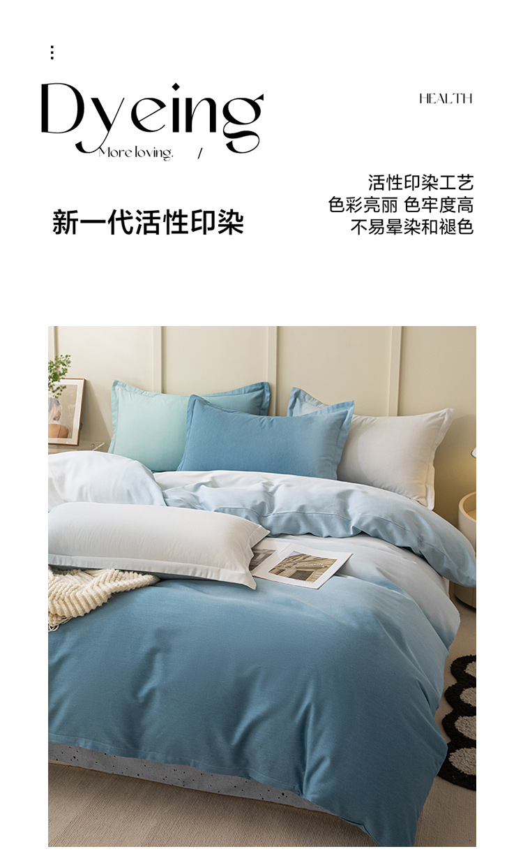 卧趣 2023新款全棉磨毛四件套渐变风印花四件套 过江寒-兰