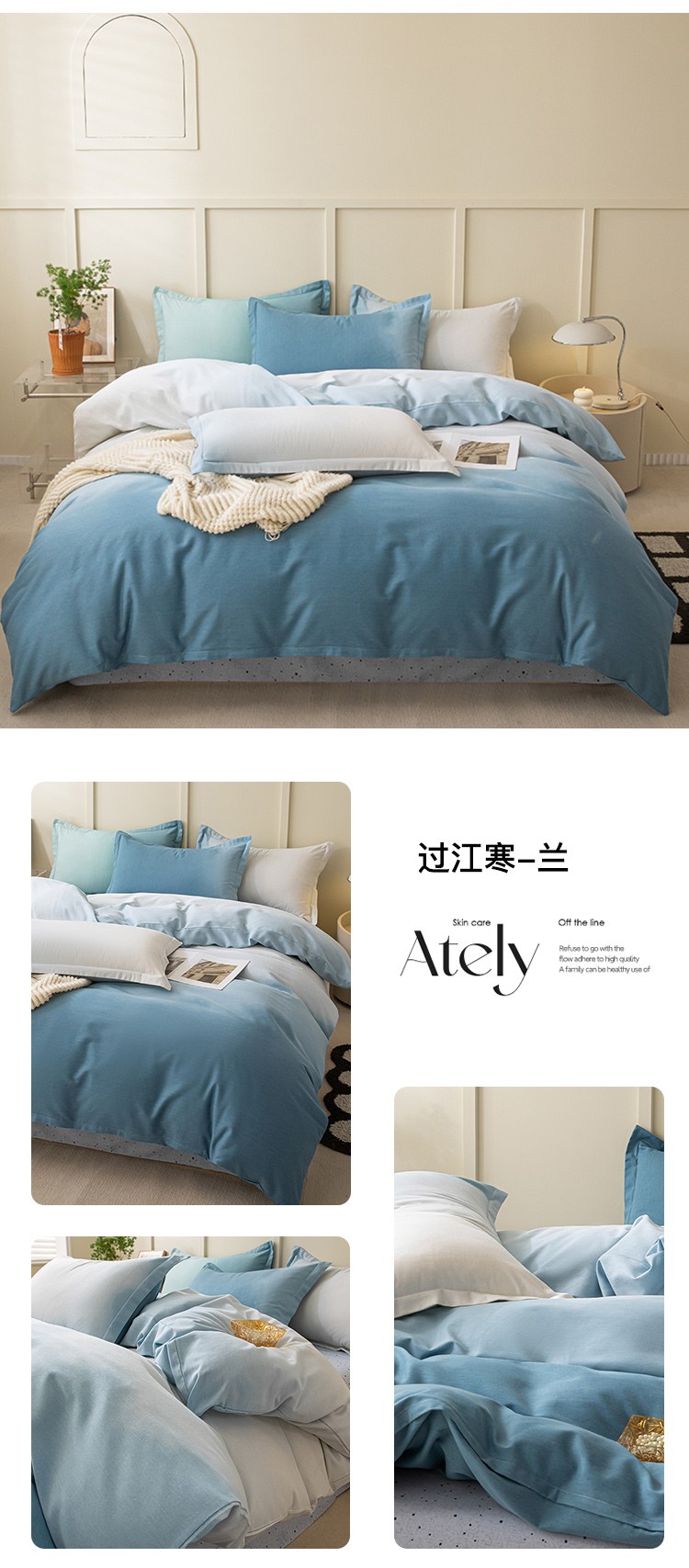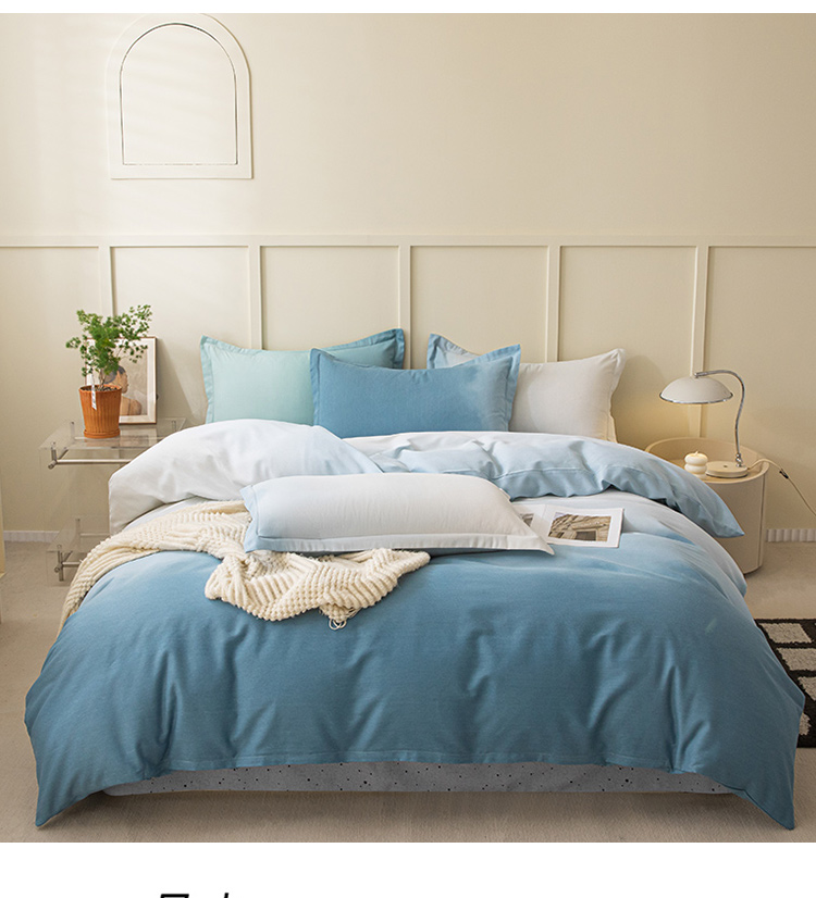 商品名称:卧趣 2023新款全棉磨毛四件套渐变风印花四件套 过江寒-兰