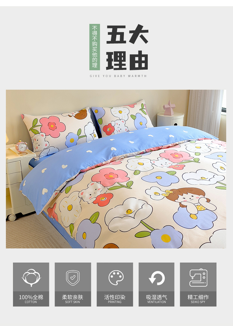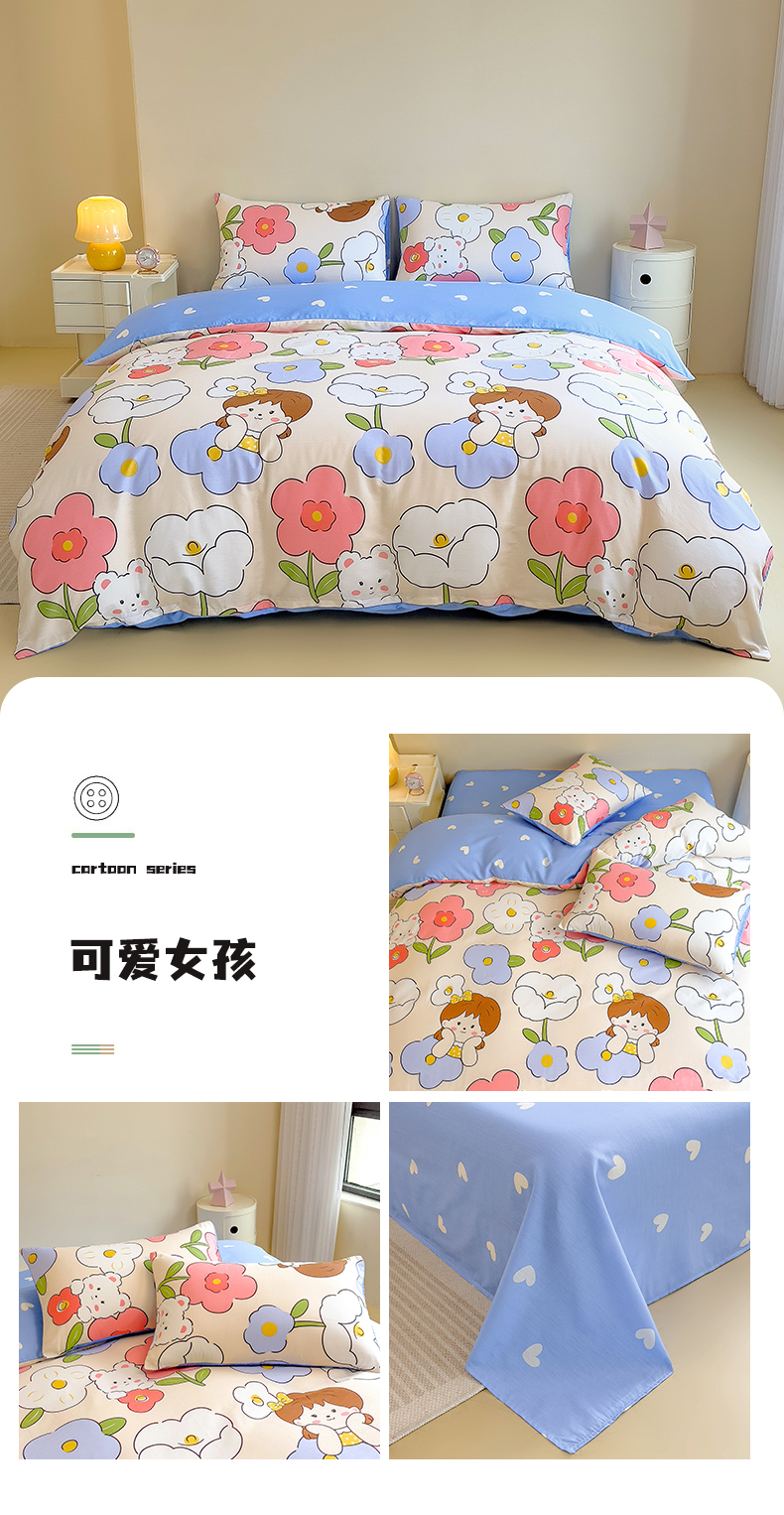 芃成家纺 2023新款全棉13070四件套 可爱女孩