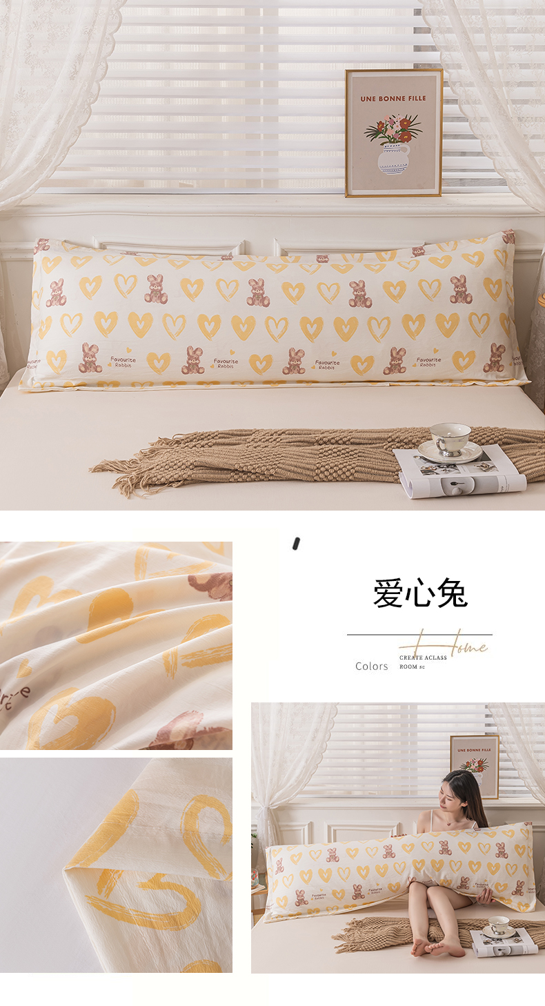 新款水洗棉麻单人枕头套亲肤双人枕套 爱心兔