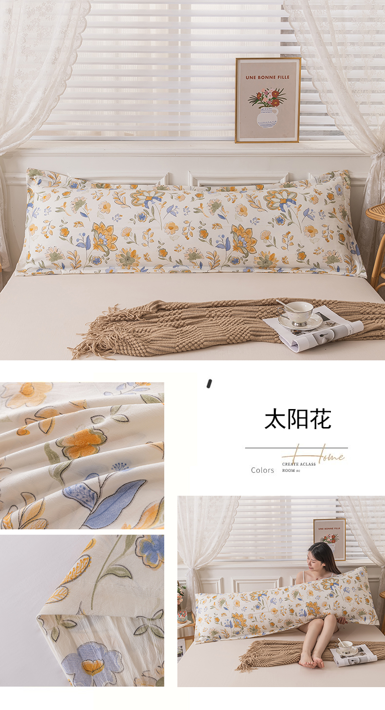 商品名称:新款水洗棉麻单人枕头套亲肤双人枕套 太阳花