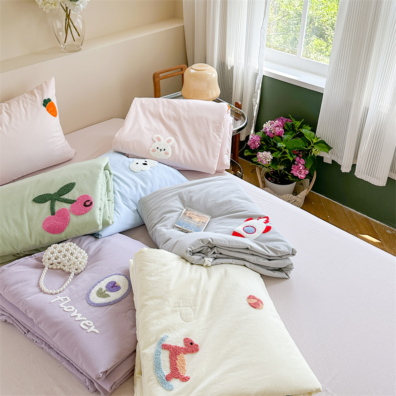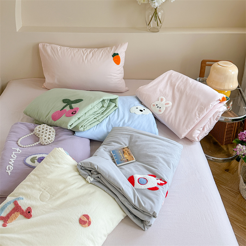 商品名称:(总)柚子YOUTH 2023新款马卡龙全棉水洗棉毛巾绣夏被四件套