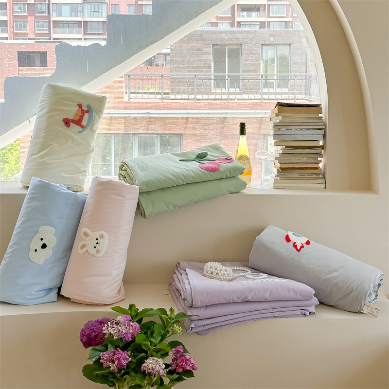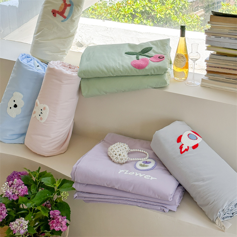 (总)柚子YOUTH 2023新款马卡龙全棉水洗棉毛巾绣夏被四件套