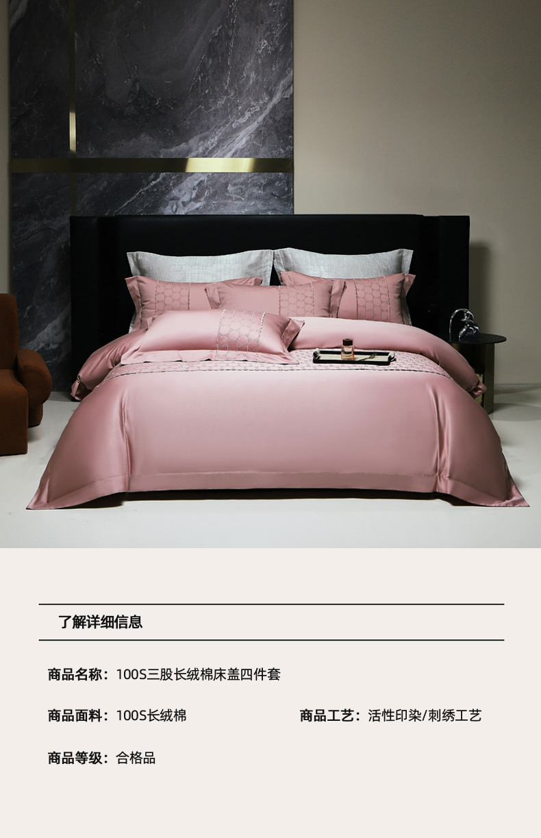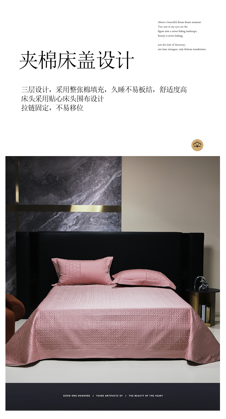 商品名称:OL家纺 2023新款100支双股长绒棉床盖夹棉提花四件套 华尔兹-豆沙粉